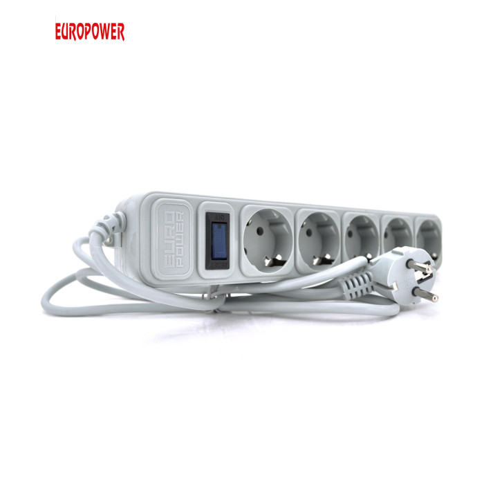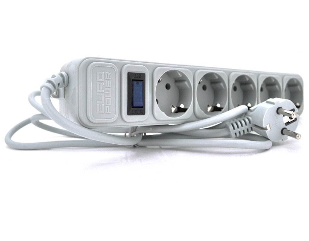Кількість розеток - 5, євророзетка із заземленням (Тип F), Довжина кабелю - 3 м, заземлюючий контакт, із загальним вимикачем, Сумарна потужність підключеного навантаження - ≤ 2000 Вт, Колір - сірий