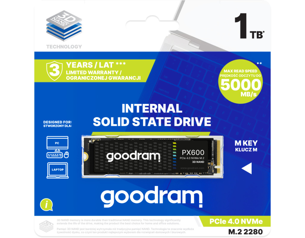 | Накопичувач SSD M.2 2280 1TB PX600 Goodram (SSDPR-PX600-1K0-80) – це втілення потужності та швидкості, яке прагнуть отримати найвимогливіші користувачі. Завдяки передовій технології 3D NAND, цей накопичувач забезпечує вражаючу продуктивність і надійність. Goodram PX600 пропонує вам обсяг пам’яті величиною в 1TB, що дозволяє зберігати велику кількість даних, будь то особисті файли, робочі проекти чи колекція улюблених ігор. Інтерфейс PCI Express 4.0 x4 в поєднанні з форм-фактором M.2 2280 забезпечує неймовірну швидкість передачі даних, яка доходить до 5000 МБ/с при читанні та 3200 МБ/с при запису. Це робить накопичувач ідеальним для використання у сучасних комп’ютерах, ноутбуках та ігрових консолях, таких як PS5. Цей SSD критично покращує продуктивність, забезпечуючи миттєві відгуки системи та швидке завантаження додатків та ігор. З його допомогою будь-яка робота чи гра стануть суцільним задоволенням завдяки плавності роботи. Це особливо оціниш, працюючи з графічними програмами або під час редагування фото та відео, де кожна секунда важлива. Товщина 3.8 мм додає елегантності компактному дизайну, що дозволяє легко інтегрувати накопичувач у різні системи. Крім покращення продуктивності вашого ПК чи ноутбука, PX600 стане ідеальним рішенням для тих, хто прагне вдосконалити свою відновлену систему. Виробник Goodram гарантує високу якість продукції та надає всебічну технічну підтримку. У разі появи питань або потреби в оновленнях прошивки, ви завжди можете розраховувати на своєчасну та кваліфіковану допомогу. Отже, якщо ви прагнете підвищити продуктивність свого пристрою до максимуму, SSD M.2 2280 1TB PX600 Goodram – ваш беззаперечний вибір. Він стане надійним партнером у виконанні найскладніших завдань і втілення найсміливіших ідей. |