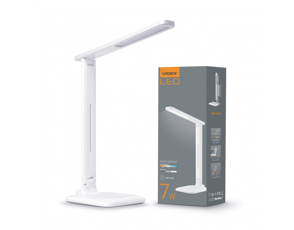 Світлодіодні настільні лампи та торшери створені для забезпечення комфортних та сприятливих умов у вашому приміщенні. В настільних лампах та торшерах, незважаючи на традиційні характеристики, реалізовані нові сучасні технології. Завдяки унікальній здатності налаштовувати освітлення цей пристрій стане незамінним помічником для людей, які багато часу проводять за робочим столом. Настільні лампи VIDEX відрізняються стильним дизайном і компактністю, крім того можуть працювати в різноманітних режимах освітлення. Плафон настільної лампи має рухоме кріплення і може змінювати кут освітлення. Не шкодить зору (немає мерехтіння) і також оснащений сенсорним управлінням. Висота в робочому положенні 34,5 cм. Для використання лампи у якості нічного світильника треба перемкнути її у режим «тепле світло» та скласти. Адаптер додається до комплекту. |