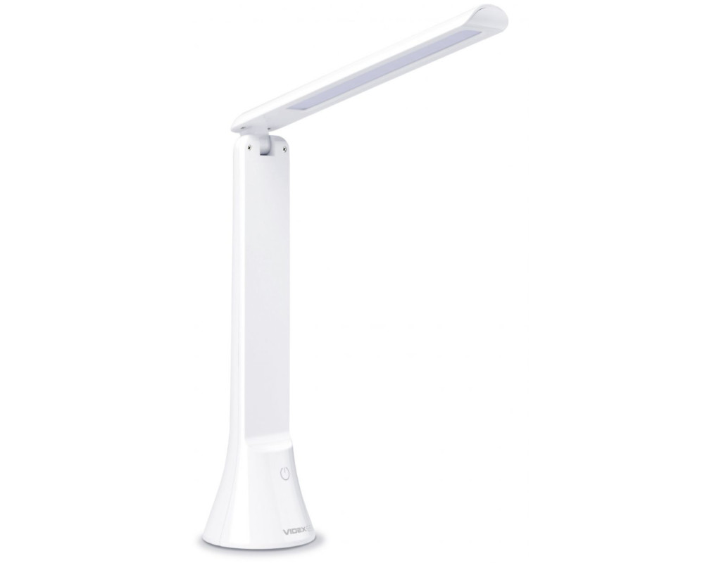 Настільна лампа VIDEX VL-TF11W відмінно підійде для різного роду завдань, наприклад, для освітлення робочої зони столу, клавіатури, читання, письма, шиття, манікюру та інше. Лампа здатна працювати без підключення до побутової мережі живлення за рахунок вбудованої акумуляторної батареї (1800мА.ч). Невеликі габарити дозволяють розміщувати лампу не займаючи зайвого місця. Робочий кут нахилу дозволяє зручно управляти лампою і направляти світло відповідно до потреби. Завдяки вбудованому акумулятору може працювати до 6 годин в автономному режимі. Особливості: