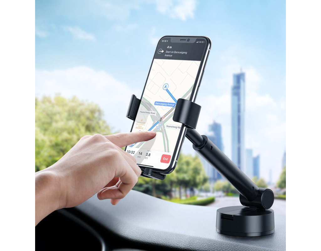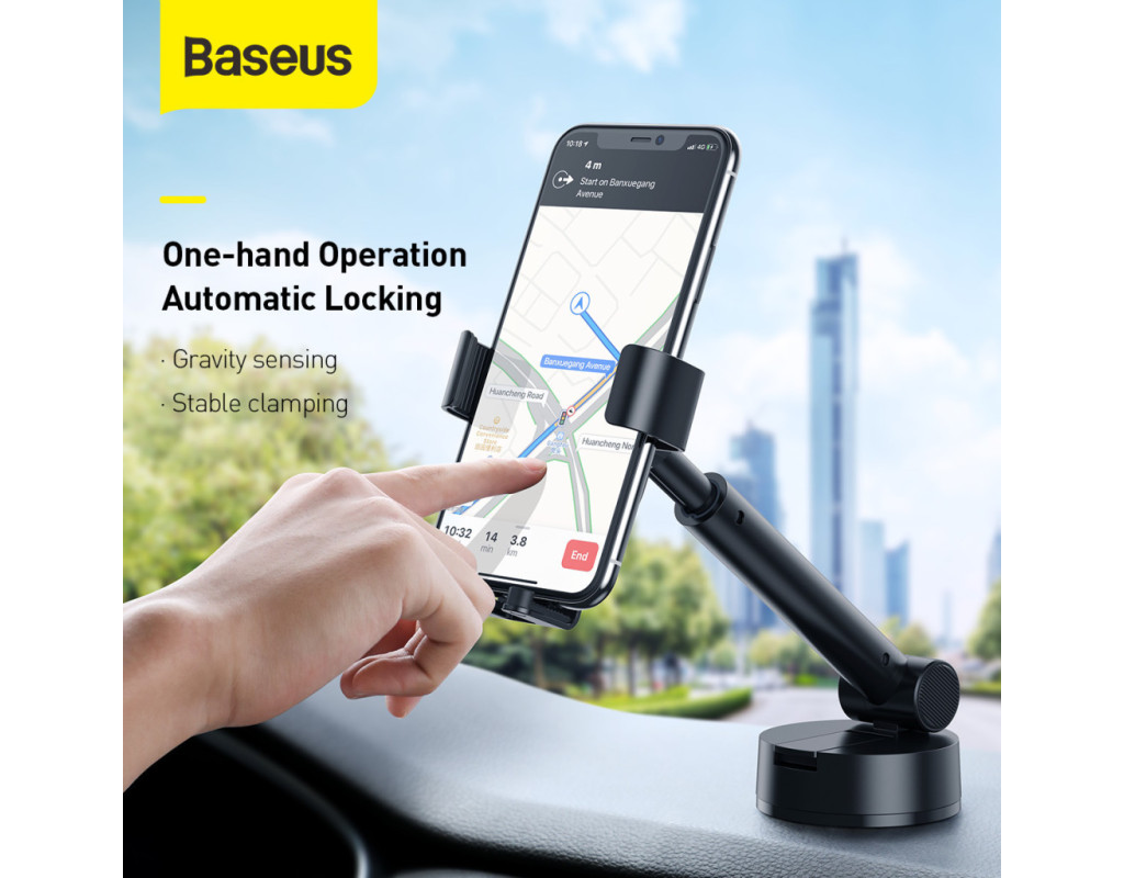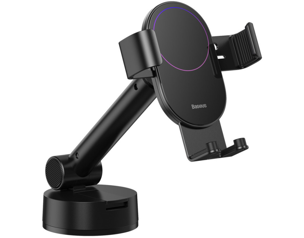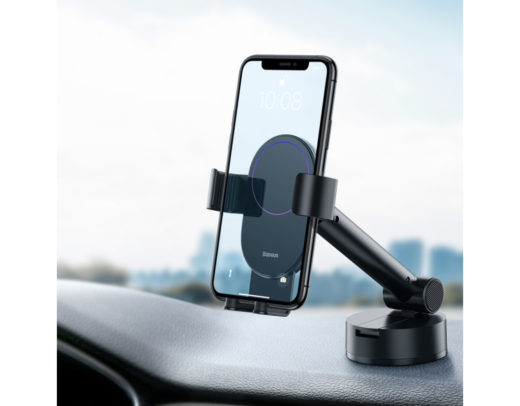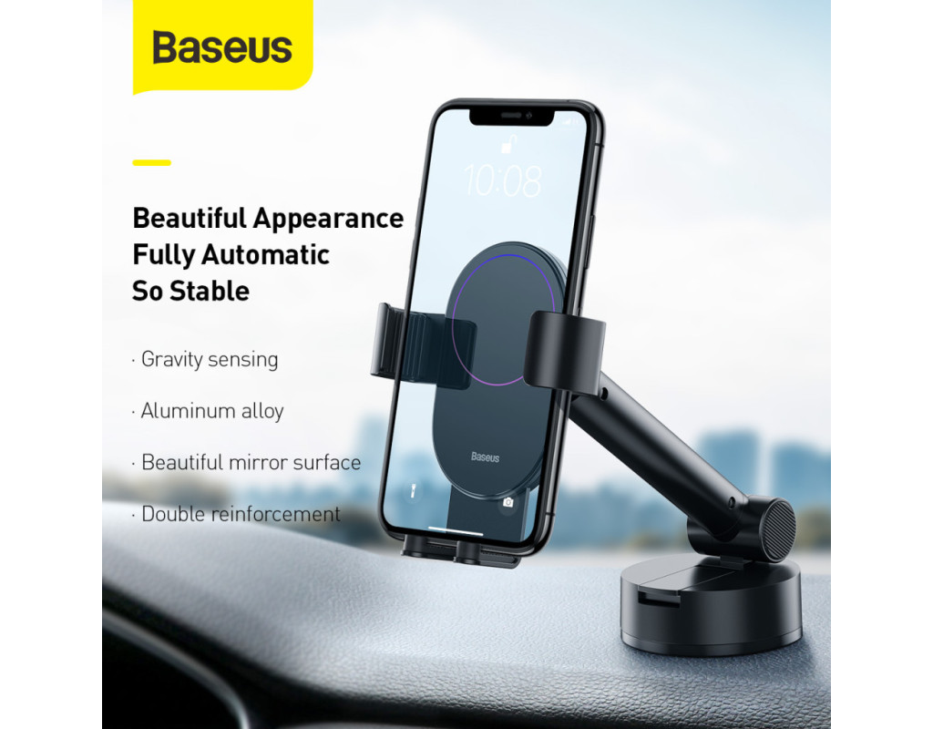 Baseus Simplism Gravity Car Mount With Suction Base — автомобільний тримач для телефона, що кріпиться на торпедо. - виготовлений з алюмінію, акрилу та пластику.; Безпечно використовувати під час водіння Прикріпити та зняти смартфон з автотримача можна однією рукою завдяки механічному затискачу, тому його безпечно та зручно використовувати під час водіння. Смартфон фіксується з трьох сторін, що унеможливлює його падіння. Фіксатори тримають телефон і зберігають його нерухомість в умовах екстреного гальмування, прискорення або поїздок нерівними дорогами. Силіконове покриття |