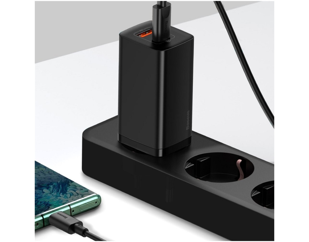| Зарядний пристрій Baseus 2xUSB 65W GaN (USB-C+USB-A) black (CCGAN2L-B01) відкриває нові горизонти у світі зарядних технологій завдяки використанню інноваційної технології GaN. Цей універсальний адаптер живлення підходить для найрізноманітніших пристроїв, даруючи їм можливість швидкої та ефективної зарядки. Завдяки максимальній вихідній потужності 65 Вт та підтримці технологій Power Delivery і Quick Charge 3.0, зарядний пристрій забезпечує відмінну швидкість живлення, що ідеально підходить навіть для ноутбуків, таких як MacBook. Завдяки дворазовому виходу у вигляді USB Type-C та USB-A, ви зможете одночасно заряджати два різних пристрої, зберігаючи час та зусилля. Не нехтуйте якістю - пристрій має максимальний вихідний струм 5 А, що є запорукою надійної роботи. Матеріали, з яких виготовлений цей зарядний пристрій, забезпечують його стійкість до нагрівання, роблячи його безпечним вибором для використання вдома чи в офісі. Технологія GaN, відзначена за низьке енергоспоживання та високу ефективність, дарує удвічі більшу продуктивність у компактнішому розмірі, що робить пристрій ідеальним рішенням для подорожей. Обираючи Baseus, ви довіряєте своєму девайсу передові рішення та високі стандарти якості, які покликані забезпечити вам комфорт та зручність у сучасному світі високих технологій. Заощаджуйте час, зарядіть свої пристрої та насолоджуйтесь свободою руху з надійним партнером у вигляді Baseus GaN. |