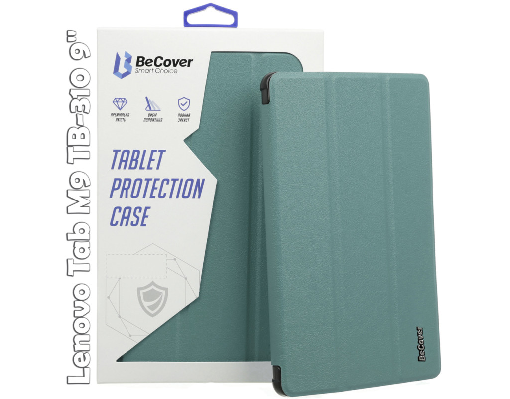 Тип - обкладинка, Сумісність з моделями - Lenovo Tab M9, Спосіб кріплення - обкладинка, спосіб закриття - магніт, Матеріал - поліуретан, темно-зелений