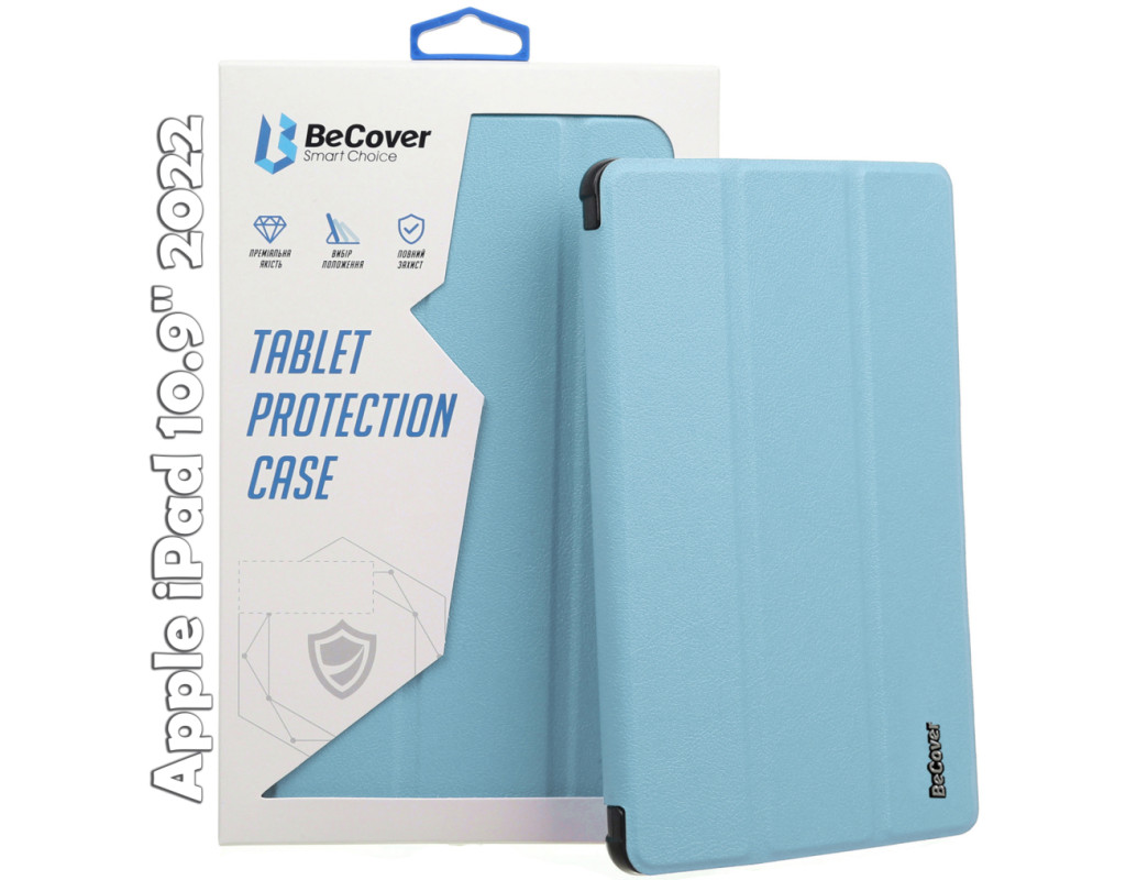 Тип - обкладинка, Сумісність з моделями - Apple iPad 11, Apple iPad 10.9 2022, Apple iPad 11" 2025, діагональ - 10.9, Спосіб кріплення - обкладинка, спосіб закриття - магніт, Матеріал - поліуретан, блакитний