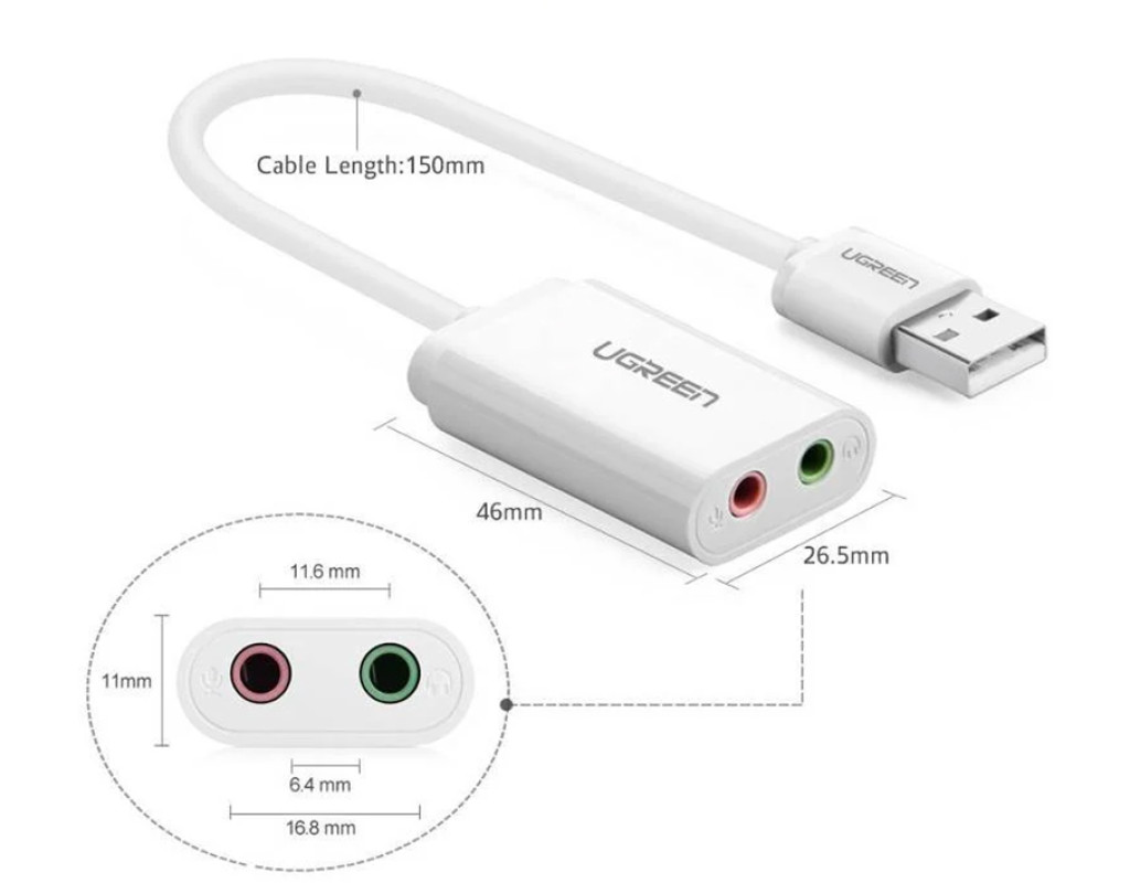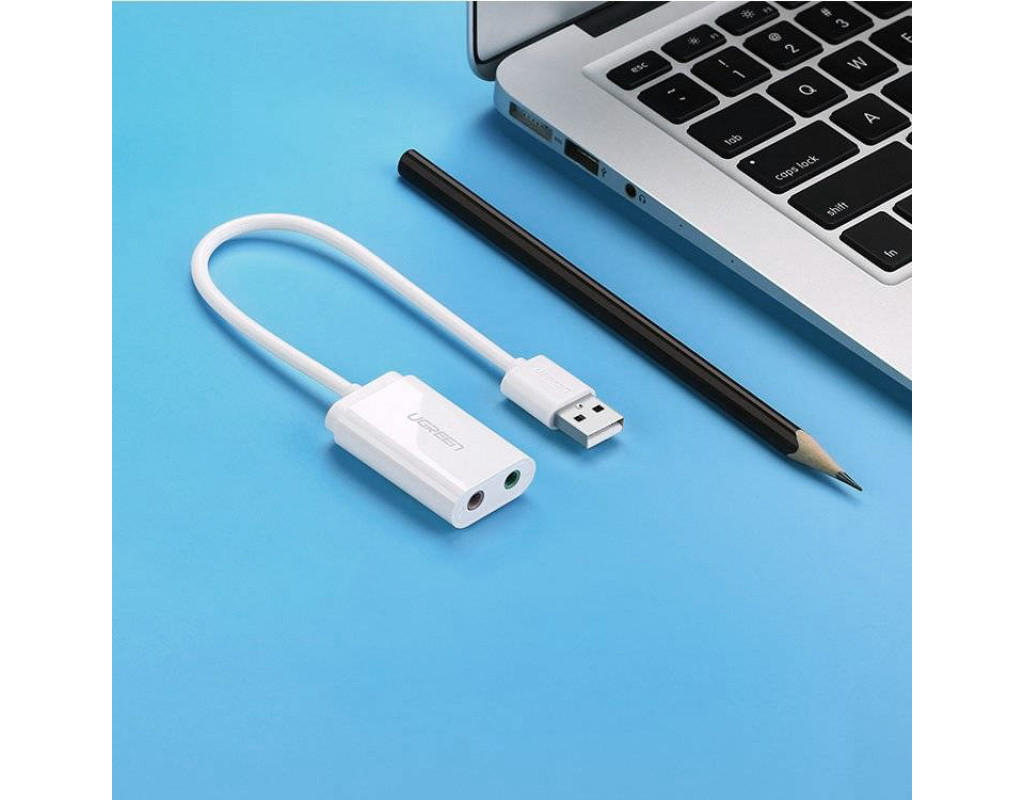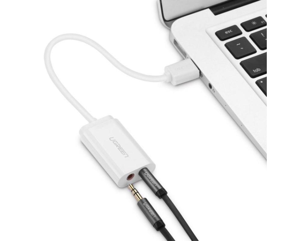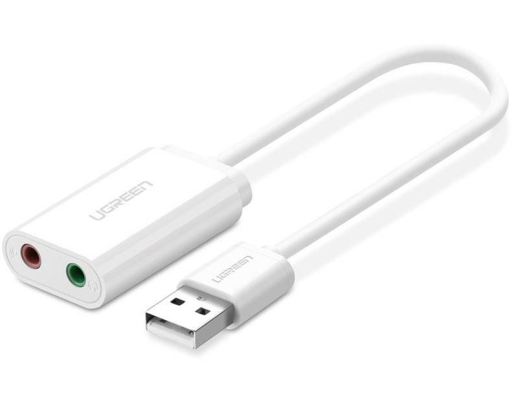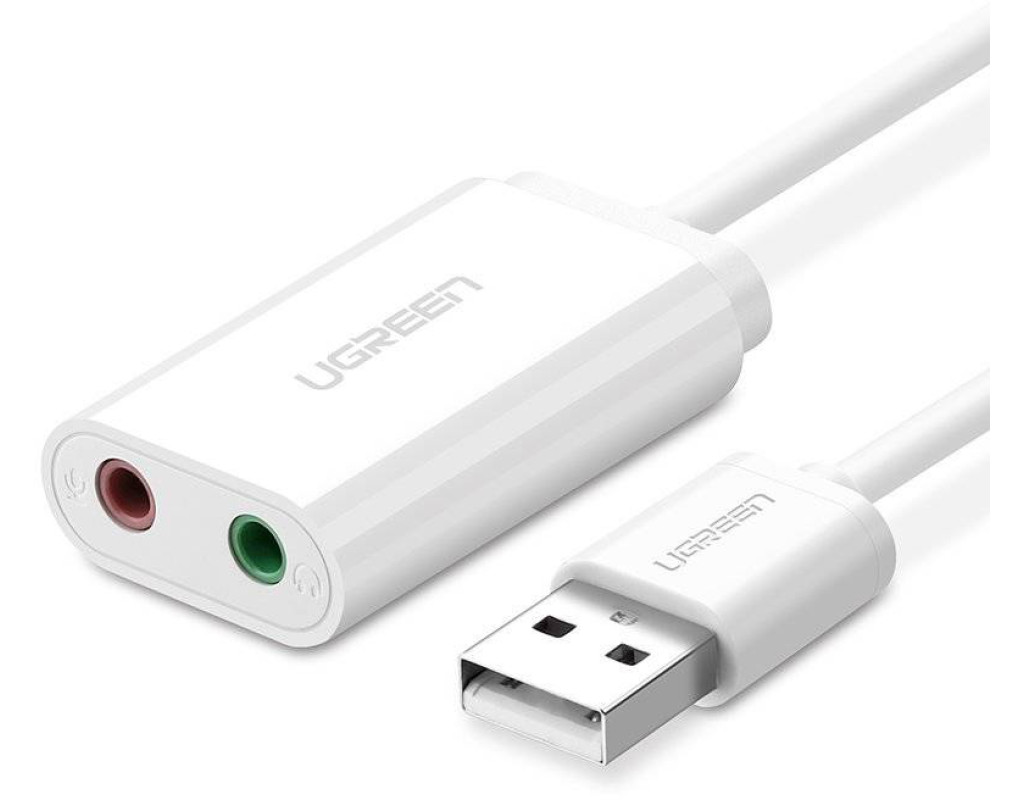 Звукова карта USB AUX jack, TRRS (Mic + Ear), ALC4042 15cm Ugreen Біла US205