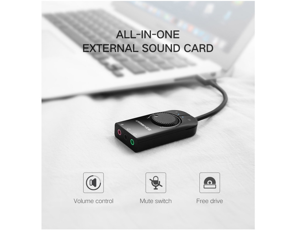 Ugreen CM129 USB External Stereo Sound Adapter (40964) - мультифункціональна зовнішня звукова карта. Має:
