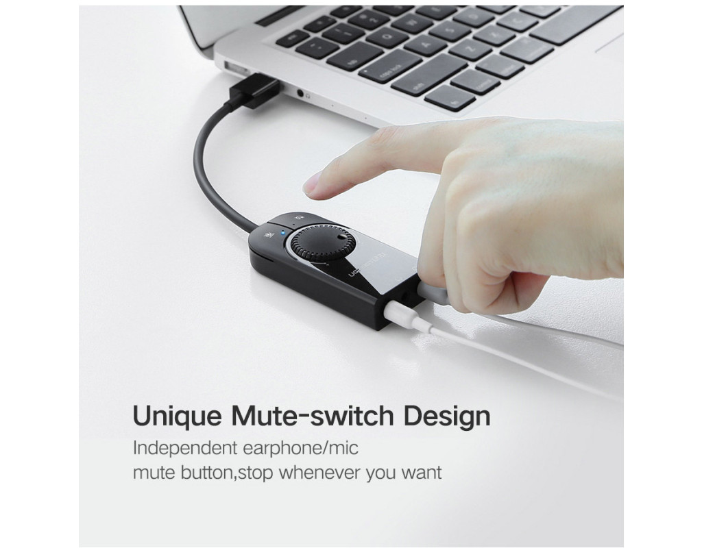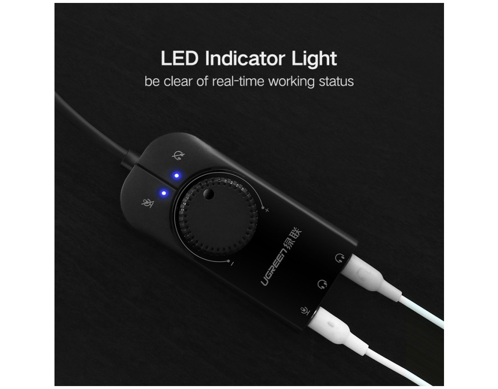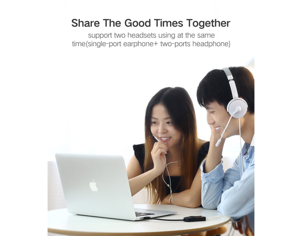 Звукова карта має можливість одночасної підтримки двох гарнітур. Також звукову карту можна під'єднати до телефона, за наявності OTG перехідника. Високу якість звуку забезпечують впроваджена шумозаглушувальна мікросхема всередині звукової карти та кабель із потрійним екрануванням мідного дроту для передавання звуку без втрат. |
