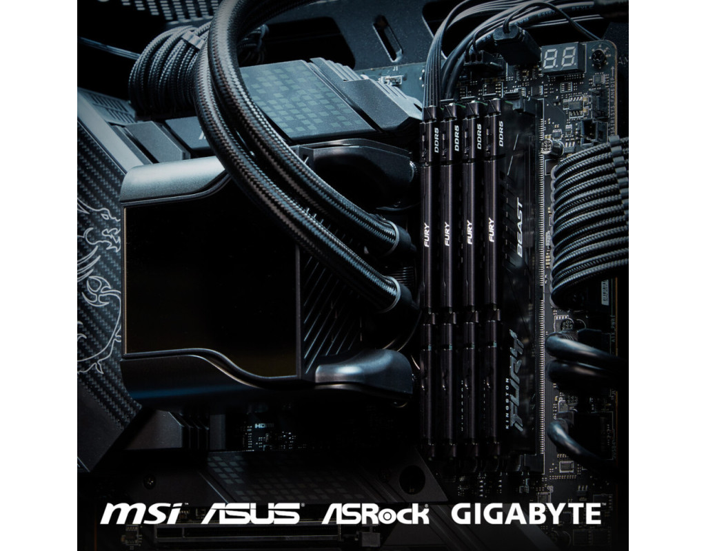 Модуль оперативної пам'яті Kingston Fury Beast DDR5 AM5 призначено для підвищення продуктивності сучасних ПК в іграх, а також у задачах стримінгу, редагування відео високої роздільної здатності, рендерінгу та інших ресурсомістких застосунків. Збільшуючи швидкість, ємність і надійність, Kingston Fury Beast DDR5 AM5 пропонує цілий арсенал розширених функцій, як-от ECC на кристалі (ODECC) для підвищення стабільності на екстремальних швидкостях, два 32-бітові підканали для підвищення ефективності й інтегрована в модуль схема керування живленням (PMIC), що забезпечує контроль і підстроювання напруг безпосередньо на модулі пам'яті. Під час гри в найекстремальніших умовах, під час стрімінгу у форматі 4K і вище або під час серйозної анімації та 3D-рендерінгу Kingston Fury Beast DDR5 AM5 - це подальше підвищення рівня, за якого ідеально поєднуються стиль і продуктивність. Пам'ять Kingston Fury Beast DDR5 AM5 було протестовано і схвалено MSI, ASUS, ASRock і Gigabyte - провідними світовими виробниками материнських плат. Пам'ять отримала сертифікат AMD EXPO, що означає, що користувачі можуть розраховувати на простий, стабільний і сертифікований розгін на платформах AMD AM5. Крім того, пам'ять має профілі Intel XMP 3.0, що дають змогу легко розганяти її і на платформі Intel. Також вона забезпечена обмеженою довічною гарантією і легендарною надійністю Kingston. Особливості