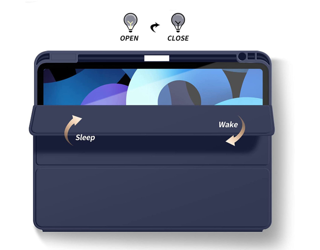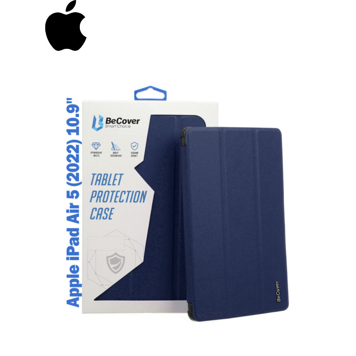 Тип - обкладинка, Сумісність з моделями - Apple iPad Air 5, діагональ - 10.9, Спосіб кріплення - обкладинка, спосіб закриття - магніт, Матеріал - поліуретан, темно-синій