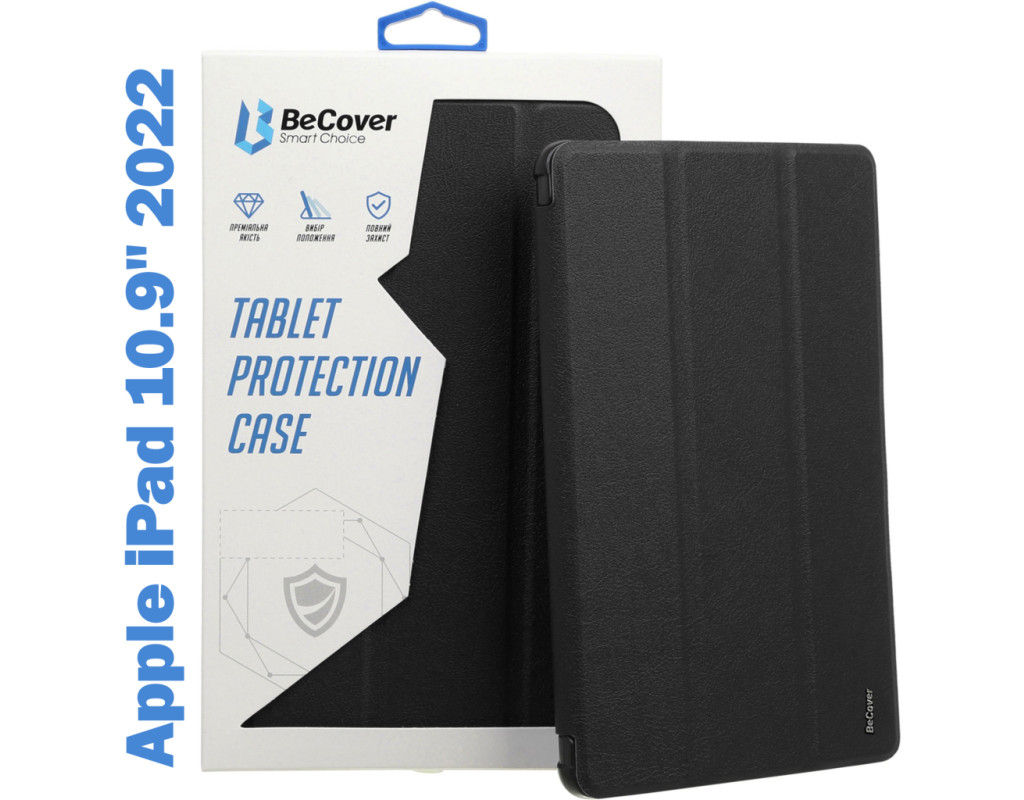 Тип - обкладинка, Сумісність з моделями - Apple iPad 10.9 2022, Apple iPad 10.9 2024, Apple iPad 11" 2025, діагональ - 10.9, Спосіб кріплення - обкладинка, спосіб закриття - магніт, Матеріал - поліуретан, чорний