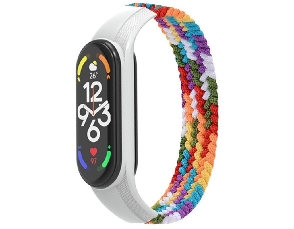 Стильний ремінець для Xiaomi Mi Band 7/6/5/4 виготовлений із міцного та практичного матеріалу. Його яскраве забарвлення перетворить ґаджет на оригінальний аксесуар, який стане чудовим доповненням модного образу. Висока якість Міцний і зручний ремінець виготовлений із водовідштовхувального матеріалу. Він витримує великі навантаження, легко відмивається від бруду та завжди зберігає презентабельний зовнішній вигляд. З ним користувач може відстежувати рівень активності в будь-яких умовах. Надійність Ремінець забезпечений жорсткою капсулою для трекера. Вона забезпечує щільне захоплення гаджета, не допускаючи його падіння навіть при інтенсивних тренуваннях. Завдяки еластичності браслета його зручно носити як на тренуваннях, так і в повсякденному житті. Особливості: - Стійкий до забруднення, води, косметики