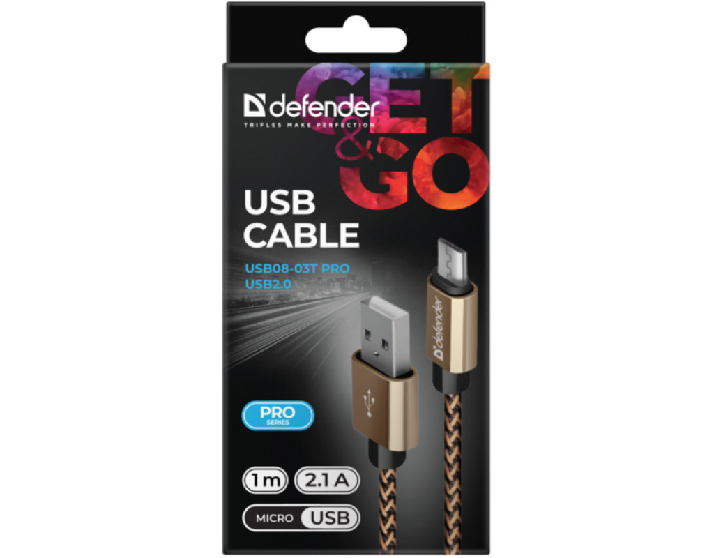 Дата кабель USB 2.0 AM to Micro 5P 1.0m USB08-03T gold Defender (87800)