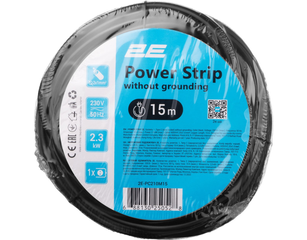 Мережевий подовжувач 2Е (2E-PC210M15) на 1 розетку Типу С (євророзетка без заземлення), вилка Типу C (євровилка без заземлення), H05VV-F 2G*1.0мм2, 15 метрів, колір чорний. Мережевий подовжувач 2Е призначений для під'єднання широкого спектра комп'ютерної, побутової та електронної техніки до електричної мережі. Кабель завдовжки 15 м дає змогу підключати техніку у віддалених в місцях від стаціонарних розеток. Подовжувач оснащений вилкою та розеткою євростандарту. Мережевий подовжувач 2Е - чудовий помічник у квартирі, в офісі та на дачі. |