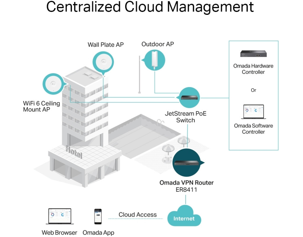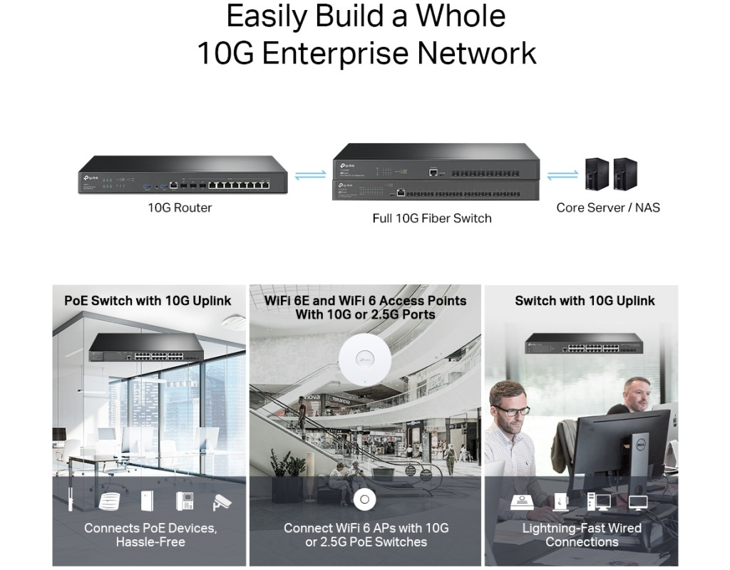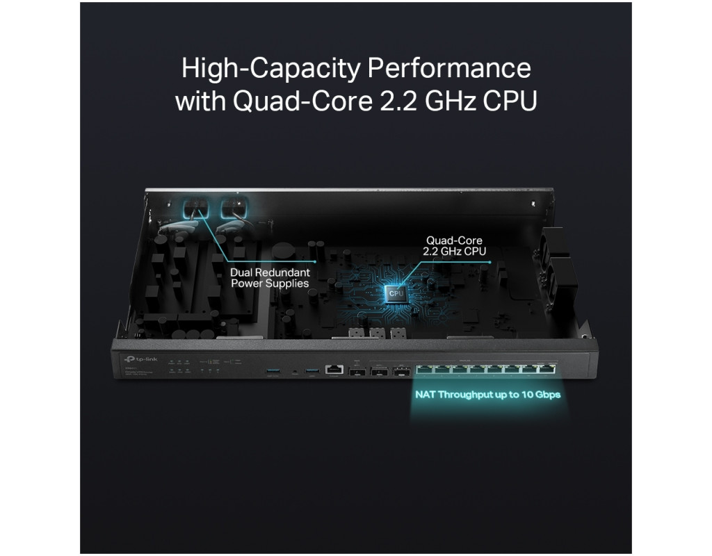 | Маршрутизатор TP-Link ER8411 – це високоякісне рішення для сучасних бізнес-завдань, яке поєднує в собі продуктивність і надійність. Завдяки підтримці Zero-Touch Provisioning (ZTP), централізованому керуванню хмарою та інтелектуальному моніторингу, ER8411 легко інтегрується в екосистему Omada SDN, забезпечуючи безпроблемне адміністрування та швидке налаштування мережі. Оснащений 4 Гб оперативної пам'яті, маршрутизатор надає високий рівень продуктивності для багатозадачності. Два 10GE SFP+ порти (1× WAN і 1× WAN/LAN) гарантують високу пропускну здатність, забезпечуючи швидке й надійне інтернет-з'єднання. Завдяки до 8 портів LAN з підтримкою швидкості 1 Гбіт/с, TP-Link ER8411 ідеально підходить для розбудови потужної локальної мережі. Інтерфейси SFP+, 10/100/1000BASE-T Ethernet, SFP та USB 3G/4G роблять цей маршрутизатор універсальним для підключення різноманітних пристроїв. До того ж, наявність двох портів USB 3.0 додає гнучкості у виборі периферійних компонентів. Підтримка різноманітних транспортних протоколів, таких як NTP, DNS, MPPE, FTP, HTTPS та багато інших, забезпечує широкі можливості для кастомізації та розширення функціональності мережі. Завдяки високозахищеному VPN за стандартами SSL/IPSec/PPTP/L2TP і OpenVPN/L2TP, цей маршрутизатор є ідеальним вибором для бізнесу з кількома філіями або для організації безпечного віддаленого доступу. Функціонал безпеки на світовому рівні включає потужний брандмауер, захист від DoS-атак, фільтрацію IP/MAC/URL та активацію ALG одним клацанням миші. TP-Link ER8411 — це не лише вибір для якісного інтернету, але й інвестиція в безпеку вашої мережі. |