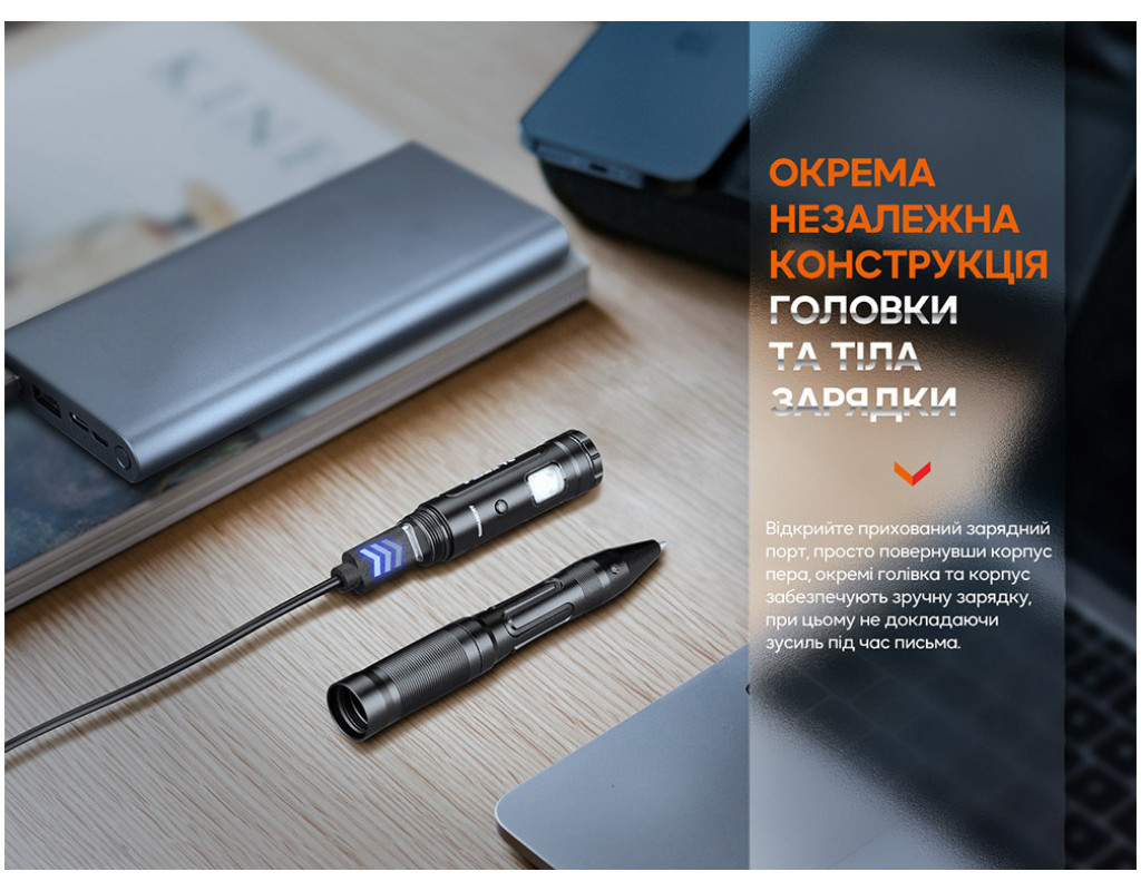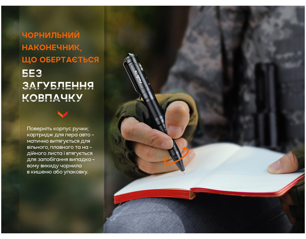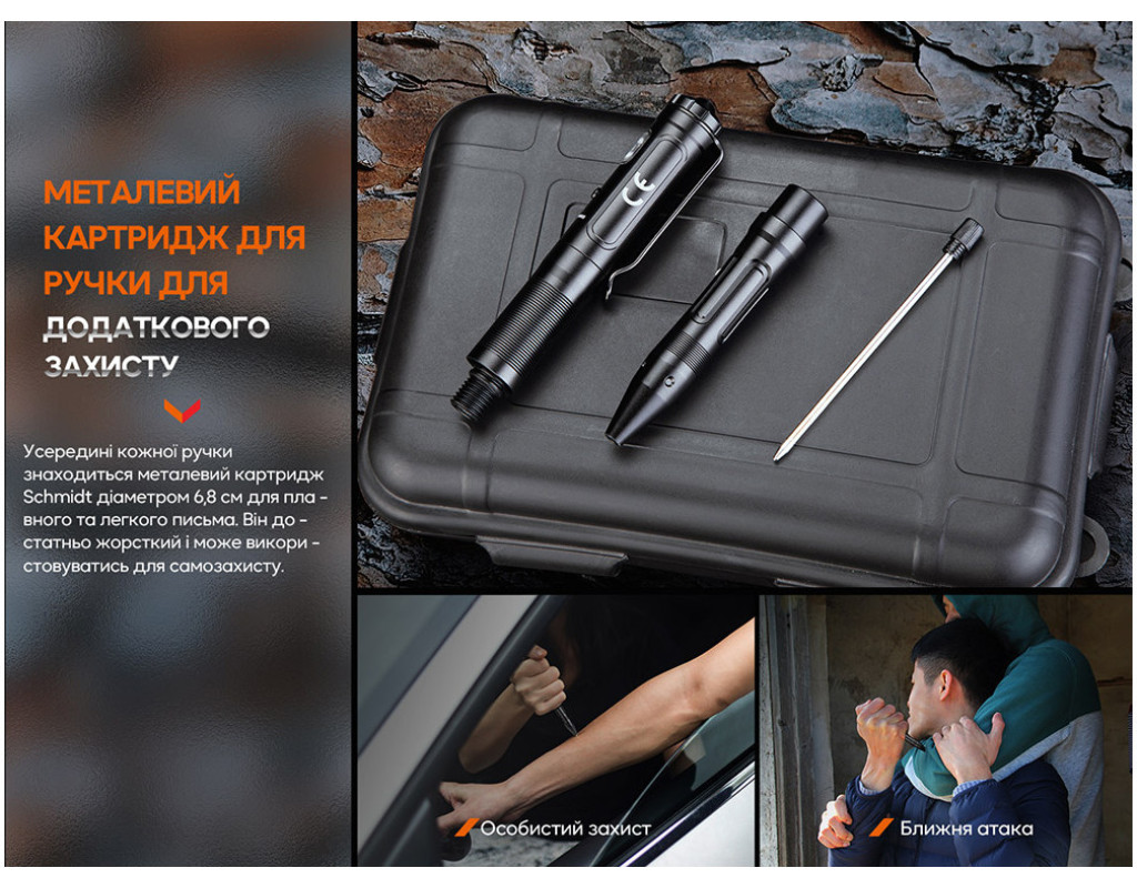 • Невелика тактична ручка з функцією ліхтаря;
