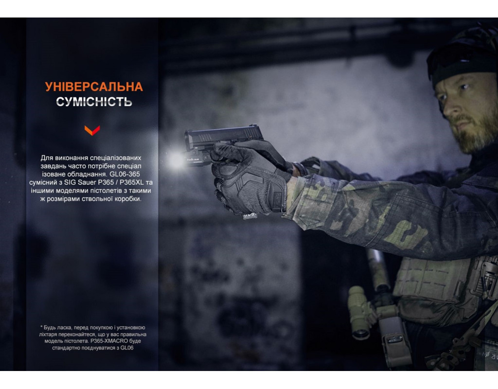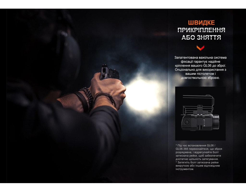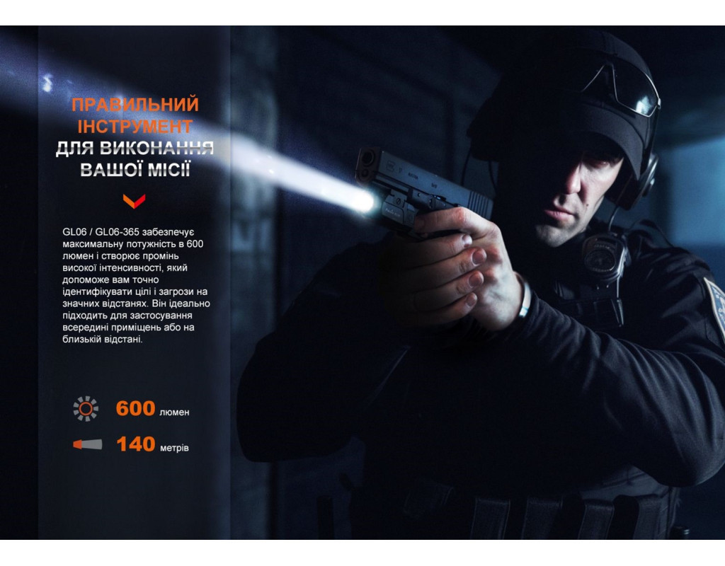| Ліхтар Fenix GL06-365 - ідеальний вибір для тих, хто цінує високотехнологічне освітлення у компактному корпусі з міцним захистом. Цей підствольний ліхтар стане незамінним інструментом для працівників служб правопорядку та всіх, хто потребує надійного освітлення в темний час доби. Його серцем є потужний світлодіод CREE XPL HI LED, здатний забезпечити яскравість до 600 люмен і дальність світлового потоку до 140 метрів. Завдяки дальності світлового потоку у 140 метрів, ліхтар освітлює об'єкти як на ближній, так і на дальній дистанції. Колірна температура 5000K забезпечує яскраве та чітке освітлення, а запатентована лінза гарантує чистоту світлового потоку, що робить цей ліхтар незамінним супутником у будь-якій ситуації. Багатофункціональність ліхтаря підкреслюється його двома режимами яскравості: максимальним і стробоскопічним. Це дозволяє користувачеві адаптувати освітлення відповідно до своїх потреб. Для зручності управління, Fenix GL06-365 укомплектований двостороннім перемикачем, який дозволяє швидко вмикати та вимикати пристрій, незалежно від того, в якій руці знаходиться пістолет. Заряджання так само зручне й продумане: ліхтар підтримує micro USB, а порт заряджання вбудовано у сам акумулятор. Це дозволяє швидко і просто заряджати пристрій, використовуючи кольоровий індикатор для визначення рівня заряду: червоний - заряджається, зелений - повністю заряджений. Безумовно, однією з найважливіших особливостей є вологонепроникність та міцність конструкції. Ліхтар має клас захисту IPX7, що забезпечує надійний захист від води, роблячи його ідеальним для використання в екстремальних умовах. Корпус виготовлений з анодованого алюмінію A6061-T6, що гарантує удароміцність та стійкість до корозії. Це означає, що ліхтар витримує падіння з висоти до одного метра, а анодована обробка запобігає окисленню при контакті з агресивними рідинами. Елементи живлення 16340 та CR123A забезпечують ліхтарю тривалий час роботи. Інтелектуальна система автоматично регулює яскравість на основі рівня заряду, сигналізуючи про його зниження трьома миготіннями кожні 2 хвилини, якщо напруга падає нижче 3.2 В. Компактні розміри, всього 61 мм у довжину та вагою 69.4 г, роблять Fenix GL06-365 зручною частиною спорядження. Він легко монтується на різні моделі зброї, такі як SIG-Sauer P365, P365X та інші, за допомогою системи важеля QD. Набір постачання включає запасні ущільнювачі, що підвищують надійність, а також USB-кабель для заряджання та інструкцію з експлуатації. Всі ці елементи роблять Fenix GL06-365 не тільки практичним і функціональним, але також надійним помічником у будь-яких умовах. |
