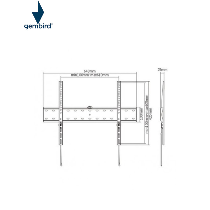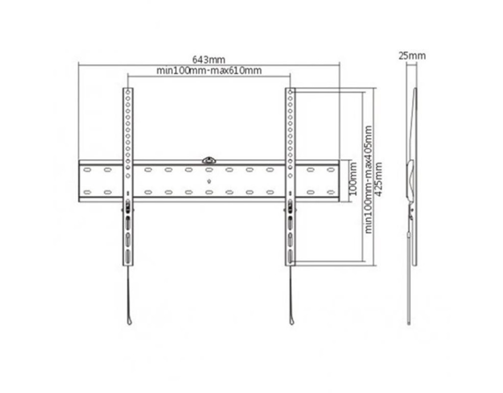 Надпотужний сталевий фіксований настінний кронштейн для РК-екрану Підтримує більшість РК-телевізорів з діагоналлю від 37 до 70 дюймів Сумісність із VESA, макс. 600 мм х 400 мм Відстань до стіни: 25 мм Практичний вбудований рідкий рівень для ідеального вирівнювання Включає всі необхідні монтажні матеріали |
