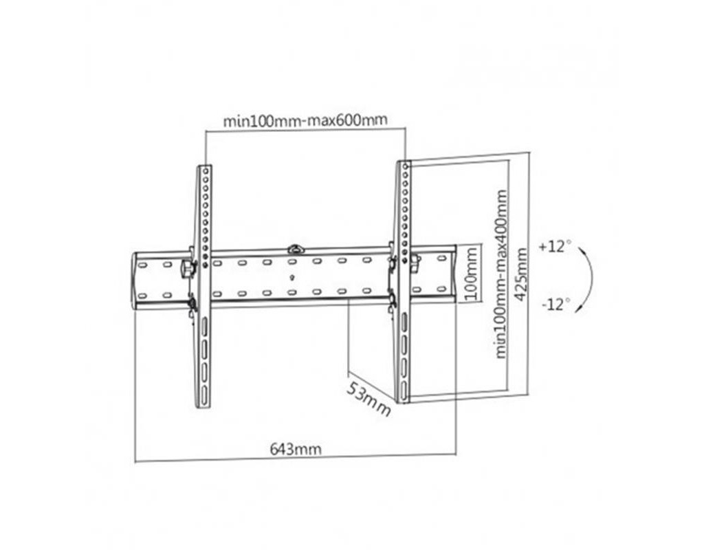 Надпотужний сталевий настінний кронштейн, що нахиляється, для РК-екрана Підтримує більшість РК-телевізорів з діагоналлю від 37 до 70 дюймів Сумісність із VESA, макс. 600 мм х 400 мм Дозволяє нахиляти до 24 градусів Відстань до стіни: 53 мм Практичний вбудований рідкий рівень для ідеального вирівнювання Включає всі необхідні монтажні матеріали |