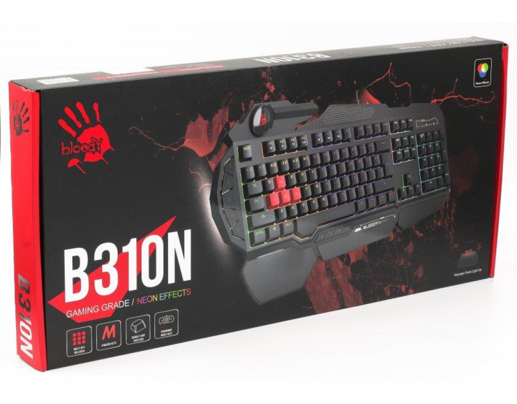 Особливості Регульоване підсвічування. Ефекти підсвічування: FN + F12 (Суцільний / Дихання / Вимк.) Яскравість: FN + ^/v 9 програмованих кнопок. Налаштуйте свою гру за допомогою 9 індивідуально програмованих клавіш Ігровий режим. Натисніть Fn+F8, щоб вимкнути клавіші «Windows» 1 мс відгук клавіші. Миттєве виконання гарантується технологією ультраопитування 1000 Гц, що забезпечує надшвидкий час відгуку 1 мс Кейкапи з подвійним нанесенням. Унікальний виробничий процес, у якому два шматки пластику відливаються разом. Гарантія того, що нанесення клавіш не зітреться з часом Програмне забезпечення Bloody KeyDominator. Створюйте власні макроклавіші за допомогою програми Bloody KeyDominator, яку можна завантажити на сайті bloody.com Вологозахищена конструкція – додаткова гарантія довгих років служби Мультимедійні гарячі кнопки. Натисніть FN + F1~F7, щоб використовувати гарячі мультимедійні клавіші. Відключення звуку, гучність -/+, відтворення/пауза, стоп, попередній/наступний трек Посилений пробіл. Подвійні гвинти + подвійні пружини + балансувальна планка забезпечують більшу довговічність |