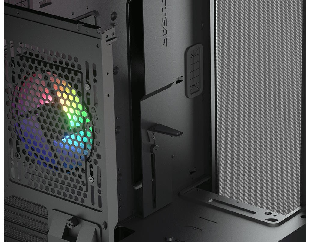 | Корпус для ПК Cougar Duoface Pro RGB прекрасно поєднує функціональність, стиль і інновації, ставши одним з найулюбленіших виборів серед ентузіастів світу геймінгу. Завдяки своїй унікальній конструкції та естетичній привабливості, він надає користувачам можливість будувати високопродуктивні системи, які виглядають максимально ефектно. Цей корпус, який відноситься до класу геймерських, пропонує два варіанти передніх панелей: одна панель, з акцентом на демонстрацію яскравого RGB підсвічування, підкреслить динаміку вашої системи, тоді як інша, оптимізована для чудового повітряного потоку, забезпечить охолодження найбільш вимогливих до ресурсів компонентів. Завдяки новаторській функції складання без інструментів, зміна панелей реалізована швидко і зручно. Різноманітність підтримуваних материнських плат дозволяє здійснити установку компонентів форм-факторів ATX, Micro-ATX, Extended-ATX, Mini-ITX та SSI CEB. Відсутність блоку живлення дає можливість обрати оптимальний блок для вашої системи, зберігаючи при цьому нижнє розташування, що покращує загальний повітряний потік всередині корпусу. Проектом передбачено 7+3 слоти розширення, що дозволяє розміщувати потужні відеокарти до 390 мм завдовжки, також передбачено регульований тримач для відеокарти, що запобігає її провисанню. Внутрішні відсіки ємністю 2 для 3.5-дюймових та 2.5-дюймових накопичувачів дають змогу організувати надійне зберігання даних. Завдяки вбудованому контролеру підсвічування, Cougar Duoface Pro RGB може керувати приголомшливими світловими ефектами, що безперечно стане родзинкою будь-якого геймерського робочого місця. Контролер легко інтегрується з 5 В ARGB роз'ємами материнських плат, дозволяючи досягати плавної синхронізації підсвітки у всій системі. У корпусі вже встановлено чотири 120 мм вентилятори, також є місця для додаткових вентиляторів: на дні під корпусом (два по 120 мм) та зверху (до трьох вентиляторів по 120 мм або двох по 140 мм). Система також підтримує рідинне охолодження через широкий асортимент місць для установки радіаторів. Прозорий бічний панель та незвичайне розташування відеокарти у вертикалі надають можливість повністю оцінити красу вашої системи. До того ж, якісний пиловий фільтр допомагає підтримувати чистоту компонентів, а знімні передня та верхня панелі полегшують доступ внутрішній частині. З розмірами 240 x 496 x 465 мм та вагою 10 кг, цей корпус виконаний у витриманому чорному кольорі, що є функціональним та водночас стильним рішенням для будь-якого геймера. Пропонуючи внутрішній простір для самих вимогливих до ресурсу систем та чудове охолодження, Cougar Duoface Pro RGB є істинним уособленням не лише потужності, але й елегантності. |