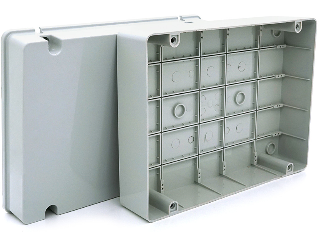 | Коробка розподільна, СOURBI 380х300х125 з поворотною кришкою, IP65 (негорюча) Ударостійка та стійка до тиску. Виготовлений із стійкого полімерного матеріалу. Властивості самозагасання, що не розповсюджують горіння. З кришкою, що замикається Коробки розподільні для зовнішнього монтажу |