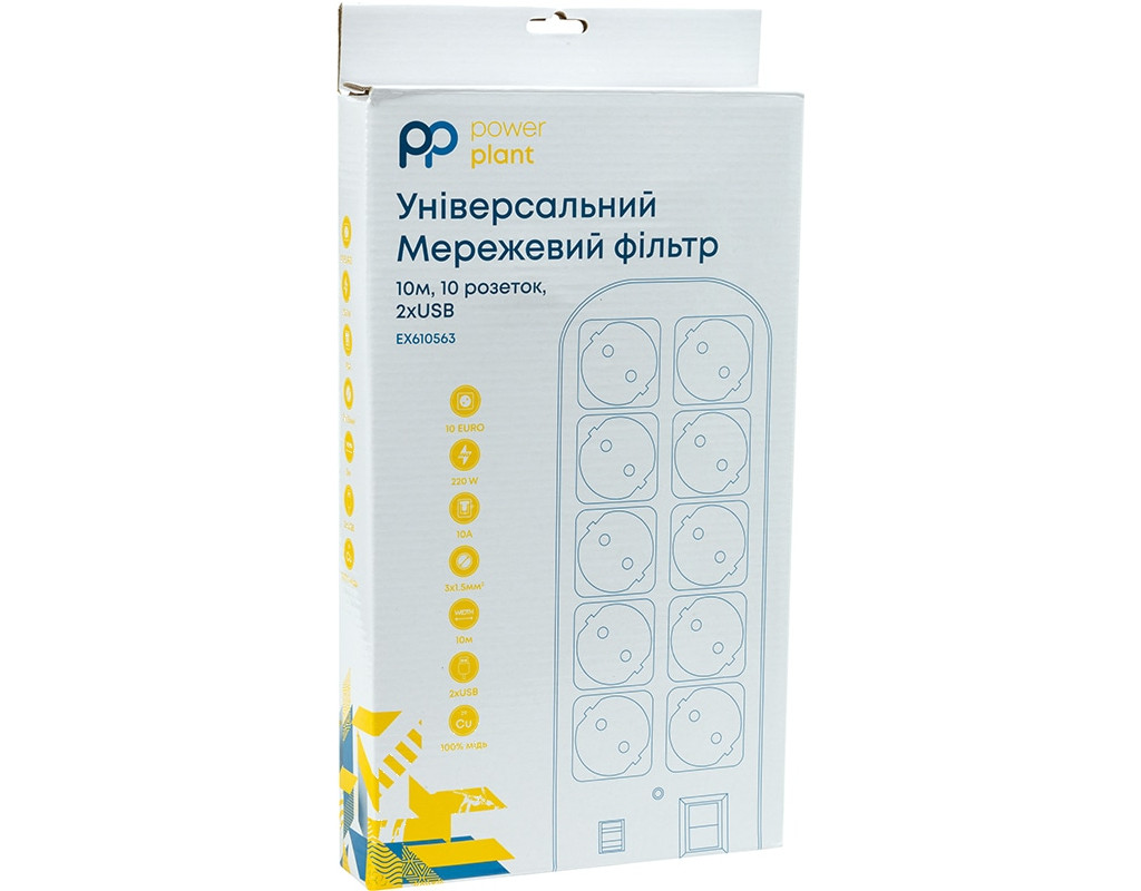 Мережевий фільтр на 10 розеток та 2 USB порти призначений для підключення широкого спектру комп'ютерної, побутової та електронної техніки до електричної мережі змінного струму з номінальною напругою не більше 250В та номінальним струмом не більше 10А. Кабель завдовжки 10 м дозволить підключити техніку в місцях віддалених від стаціонарних розеток. Ізоляційний матеріал H05VV-F та провідники зі 100% міді гарантують високу стійкість до температур та механічних пошкоджень, а також максимальну електропровідність та стійкість до навантажень. Корпус мережевого фільтра виготовлений із вогнестійкого пластику. Фільтр оснащений універсальними розетками євростандарту із заземленням. Надійний та зручний подовжувач захистить електронну техніку від короткого замикання та перепадів напруги. Фільтр PowerPlant стане відмінним помічником у будинку, офісі або на дачі. |