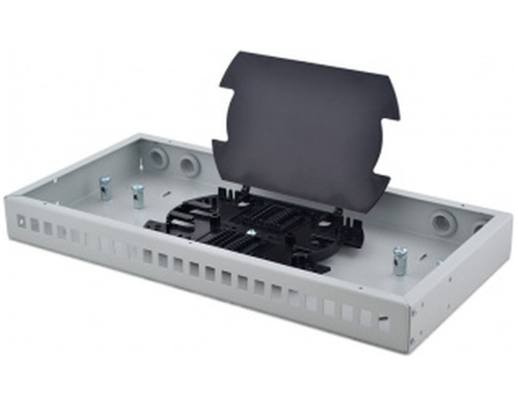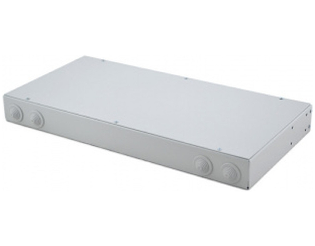 Патч-панелі Сrosver FOB 19/1-332-SC lite призначені для монтажу в 19-дюймову стійку і застосовуються для закінцьовування оптичних кабелів методом зварювання з використанням пігтейлів. Ці патч-панелі є універсальним рішенням для реалізації ввідно-розподільних пристроїв, телекомунікаційних кросів, серверних кімнат та інших комунікаційних центрів. Проста конструкція без висувних і поворотних частин мінімізує вартість, що дозволяє масово використовувати її в будинкових розподільчих вузлах. На лицьовій поверхні розміщені 24 отвори для установки оптичних адаптерів типу SC (або 24 дуплексних адаптера типу LC). Для вводу кабелів є 4 отвори на задній стінці корпусу. Ці отвори закриті заглушками, які оберігають від попадання пилу, комах, павуків і т.п. всередину. Вони виготовлені з гнучкого пластикату, і їх можна легко адаптувати під введення кабелю потрібного діаметру. Введені кабелі можуть кріпитися за допомогою металевих або пластикових хомутів до спеціальних зачепів на дні корпусу. Для кріплення силових елементів кабелю передбачені окремі фіксатори. В патч-панелі Сrosver FOB 19/1-332-SC lite встановлена одна сплайс-касета S332 з максимальною ємністю 32 зварних з'єднання. Касета оснащена відкидною кришкою. При необхідності можлива установка ще однієї касети, яка не входить до комплекту. Кронштейни для кріплення патч-панелі в телекомунікаційній стійці 19" можна встановити як урівень з передньою стінкою корпусу, так і з уступом 50 мм при необхідності. Патч-панель Сrosver FOB 19/1-332-SC lite виготовлена з листової сталі товщиною 1 мм і має високоякісне покриття порошково-полімерною фарбою світло-сірого кольору. |