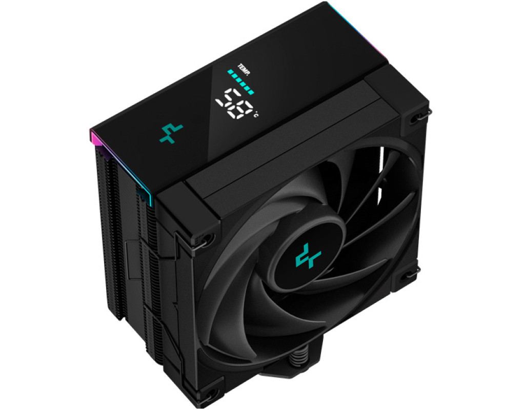 AK400 Digital — кулер для процесора від компанії Deepcool. Його основне призначення — охолоджувати процесор ПК. Виріб оснащений алюмінієвим радіатором, який допомагає швидше охолодити процесор. Прилад оснащений високопродуктивним вентилятором FDB FK120, який має великі лопаті, які здатні захопити велику кількість повітря. Виріб забезпечує великий повітряний потік та розсіювання до 220 Вт теплової енергії для досягнення зниженої температури процесора під час роботи складних системних програм. За одну хвилину виконує від 500 до 1850 обертів. На корпусі кулера розташований зрозумілий цифровий екран, який відображає температуру процесора в реальному часі, а також попереджає про високу температуру. Керування дисплеєм здійснюється за допомогою простої програми, для якої потрібен лише відкритий роз’єм USB 2.0. Виріб підійде для всіх вказаних сокетів. Виготовлений він зі зносостійкого пластику класичного чорного кольору. Він забезпечить стабільну та ефективну роботу процесора без перегрівів. Цьому також сприяють чотири мідні трубки, які забезпечать максимальний тепловідвід. |
