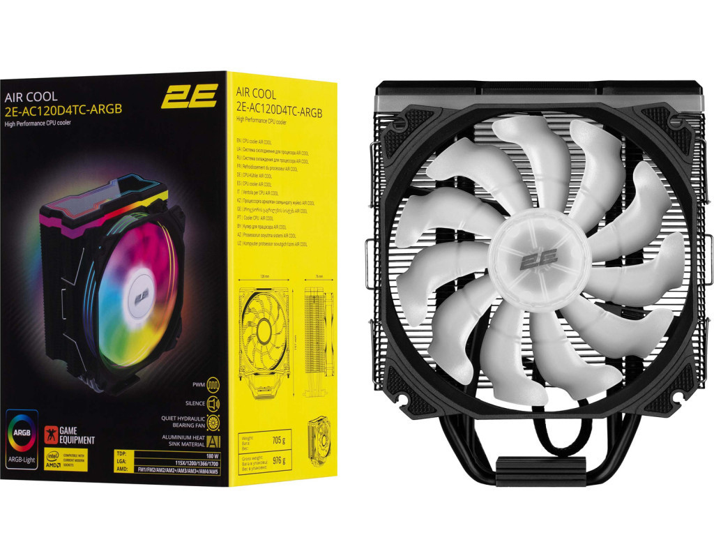 2E Air Cool AC120D4TC ARGB — відмінний вибір для ефективного охолодження процесора. Цей кулер поєднує в собі ефективне охолодження, розширену сумісність з сокетами та підсвітку ARGB. Кулер має конструкцію з вентилятора 120 мм, що забезпечують великий потік повітря та оптимальне охолодження процесора. Вентилятор оснащений світлодіодною підсвіткою ARGB, яка додає ефектності системі. 2E Air Cool AC120D4TC ARGB легкий у встановленні та використанні. Він поставляється з необхідними компонентами та кріпленням, що дозволяє легко і швидко встановити його на процесор без особливих зусиль. |