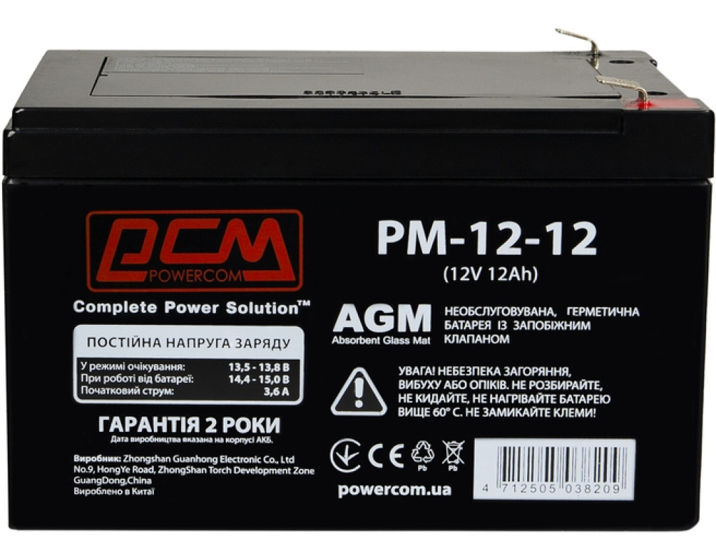 | Батарея до ДБЖ Powercom 12В 12Ah (PM-12-12) — це якісний свинцево-кислотний акумулятор, що відзначається своєю герметичністю і здатністю працювати без обслуговування. Завдяки AGM технології, електроліт тут абсорбований у скловолоконному сепараторі, що дає можливість рекомбінувати до 99% газу, убезпечуючи навколишнє середовище. Розмір акумулятора становить 151 x 98 x 95 мм, а вага — 3.8 кг, що робить його оптимальним для різноманітних сфер застосування. Його конструкція забезпечує високу стійкість до вібрації і дозволяє використовувати батарею у широкому діапазоні пристроїв, від джерел безперебійного живлення до медичного обладнання. Акумулятор має леговані кальцієм пластини, які забезпечують низький саморозряд і високу щільність енергії. Це разом із корпусом з ABS пластику, що не підтримує горіння, робить батарею вкрай надійною. Важлива особливість — відсутність необхідності у регулярному обслуговуванні, що робить її практичним вибором для використання в автономних системах енергопостачання. Відповідає вимогам ДСТУ, UL, IEC, що підтверджує її бездоганну надійність і відповідність стандартам. |