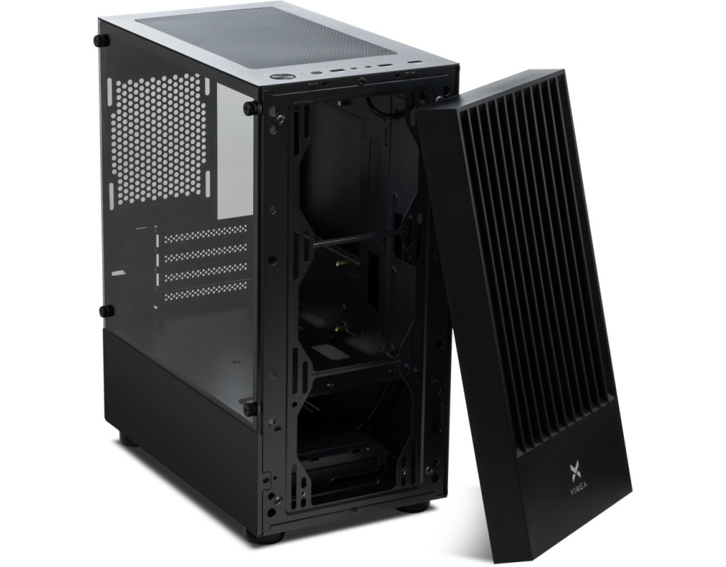 Vinga CS316B – відмінний корпус, призначений для високопродуктивних ігрових комп'ютерів. Він підтримує материнську плату Micro - ATX та Mini - ITX. Вбудований блок живлення в стандартній комплектації відсутній, але в нижньому сегменті вироби є відділ для його монтажу. Корпус має 5 внутрішніх відсіків для розширення розмірами від 2.5 дюймів до 3.5 дюймів. Також є 4 слоти розширення. Охолодження здійснюється за допомогою 6 вентиляторів (опціонально), кожен - діаметром 12 см. Для зручності на корпусі розташовано п'ять зовнішніх роз'ємів, два USB 2.0, один USB 3.0, вхід для навушників і мікрофону. Корпус металевий, з металу товщиною 0.5 мм, ліва бічна панель з загартованого скла. Загальні габарити корпусу - 200 х 426 х 365 мм. |
