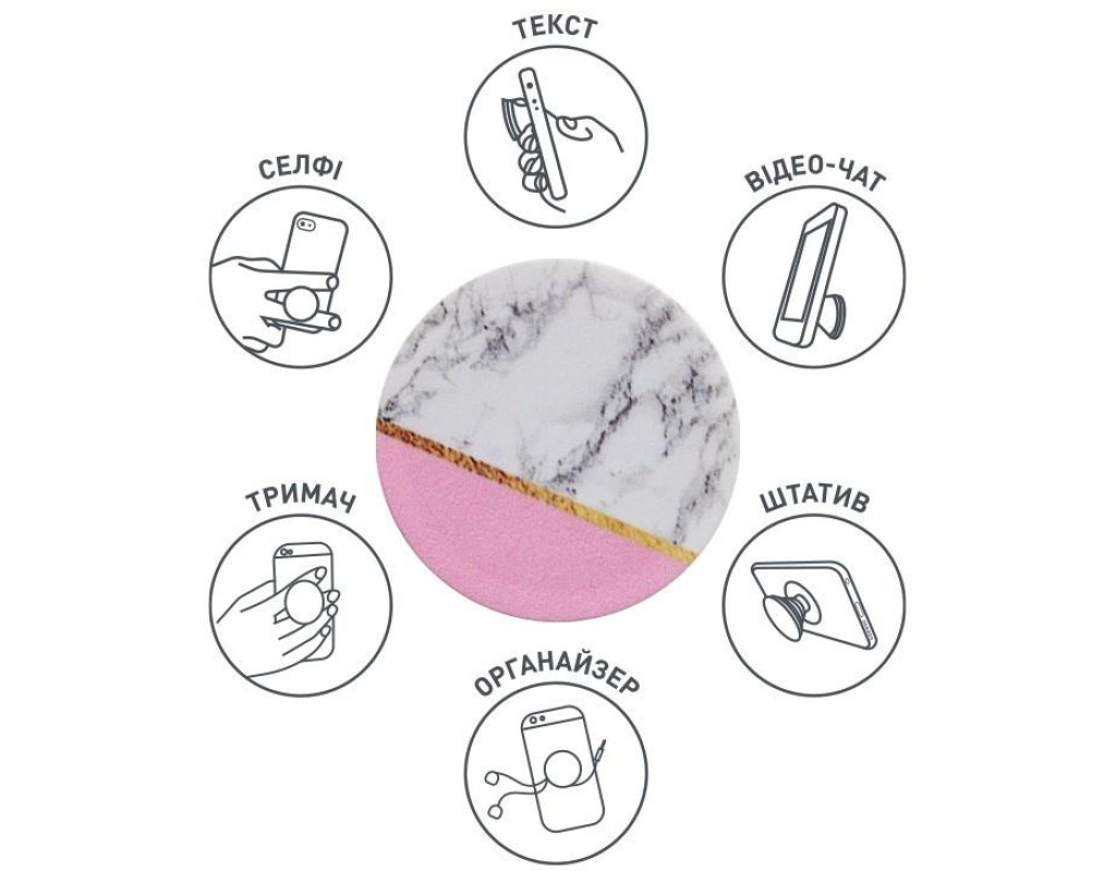 Функціонує як зручна підставка, завдяки якій ви можете переглядати відео. Використовуйте, як штатив для найкращих селфі або відео-конференції. Надійна липучка 3М приклеюється до більшості пристроїв та чохлів. Розміри: діаметр 39,74 мм х 7 мм і 24,25 мм в розкладеному вигляді. |