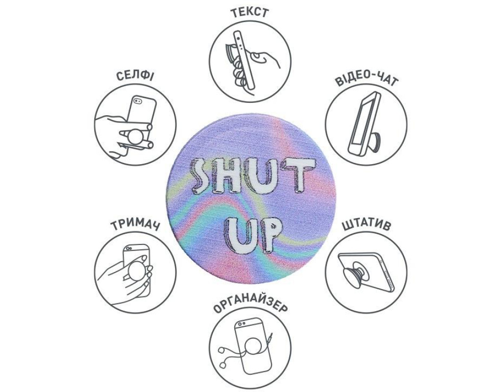 Функціонує як зручна підставка, завдяки якій ви можете переглядати відео. Використовуйте, як штатив для найкращих селфі або відео-конференції. Надійна липучка 3М приклеюється до більшості пристроїв та чохлів. Розміри: діаметр 39,74 мм х 7 мм і 24,25 мм в розкладеному вигляді. |