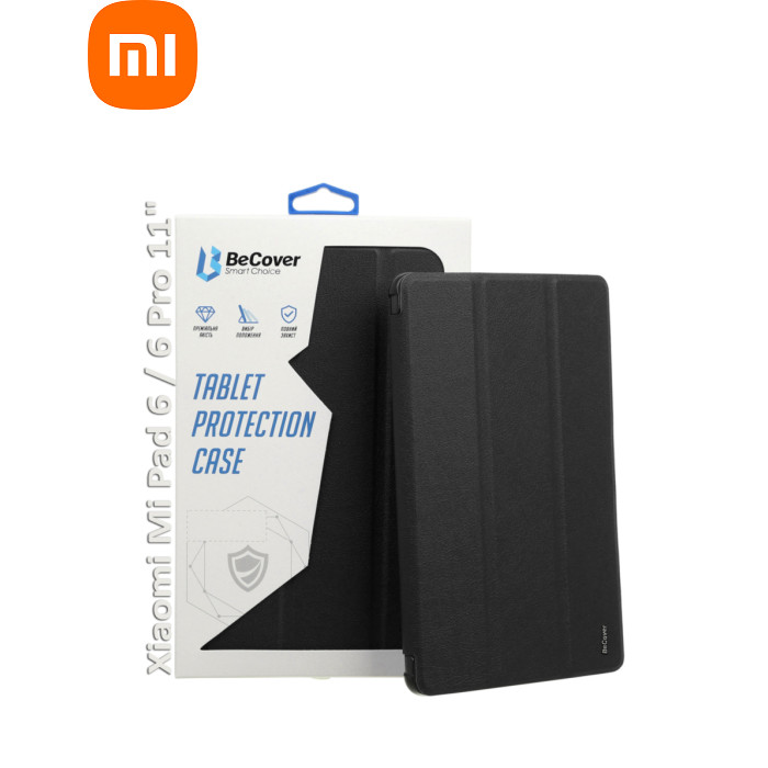 Тип - обкладинка, Сумісність з моделями - Xiaomi Pad 6 Pro, Xiaomi Mi Pad 6, діагональ - 11, Спосіб кріплення - обкладинка, спосіб закриття - магніт, Матеріал - штучна шкіра, чорний