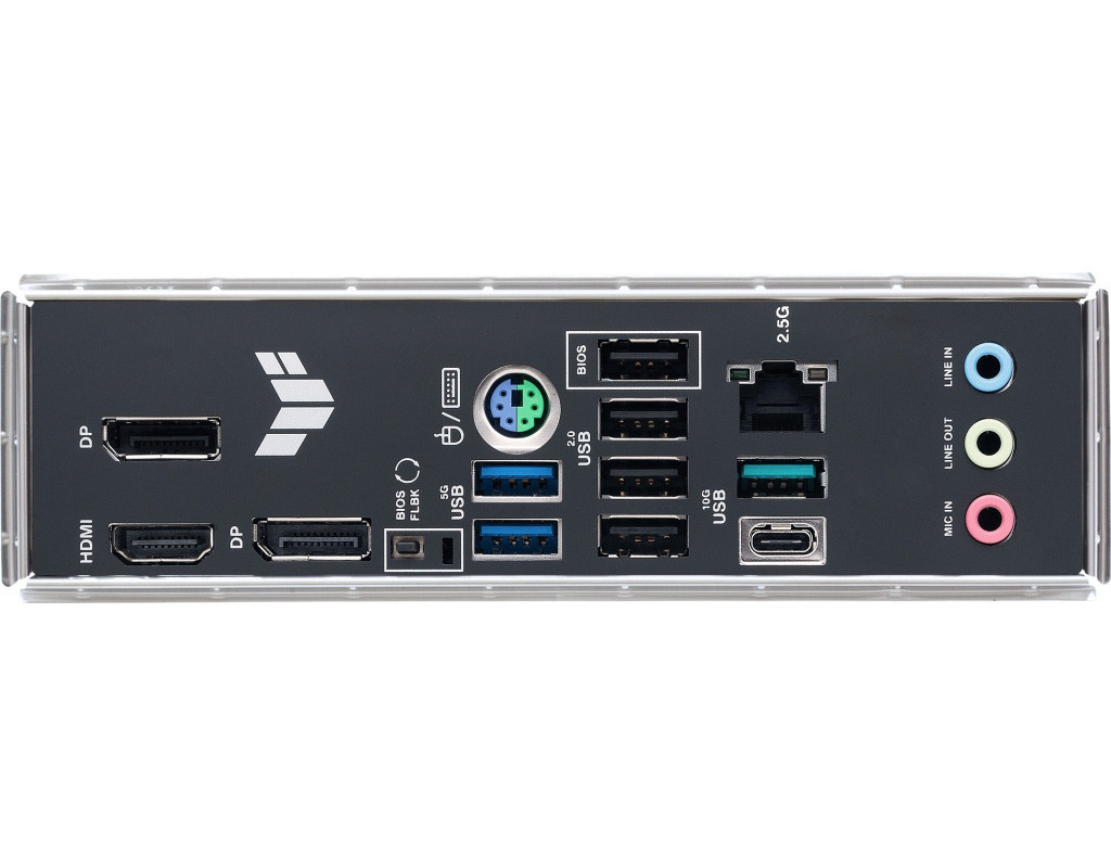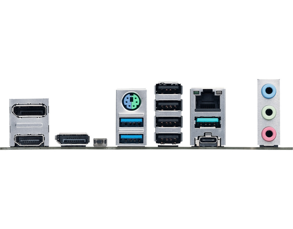 1 x Flash BIOS Button, 1 x HDMI, 1 x PS/2, 1 x RJ45, 2 x DisplayPort, 2 x USB 3.2 Gen 1 Type-A, 2 x USB 3.2 Gen 2 Type-A, 3 x Audio, 4 x USB 2.0 |