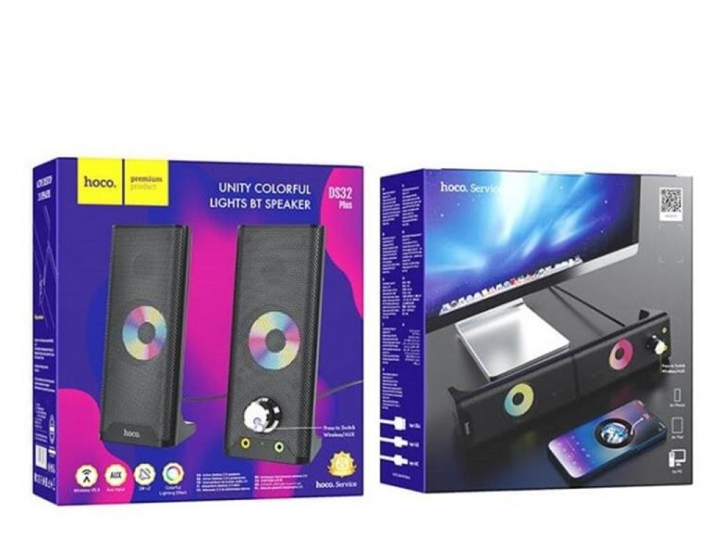 | Акустика для ПК HOCO DS32 Plus Unity Colorful Lights BT добре підходить для озвучування фільмів, музики та звукового супроводу у комп'ютерних іграх. Вбудовані високоякісні динаміки дозволяють детально та реалістично відтворювати високі частоти. Підключається до комп'ютера або ноутбука через роз'єм AUX-3.5мм/живлення підсвічування через роз'єм USB/+Bluetooth. Живлення здійснюється через кабель USB.
