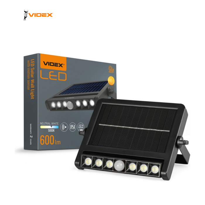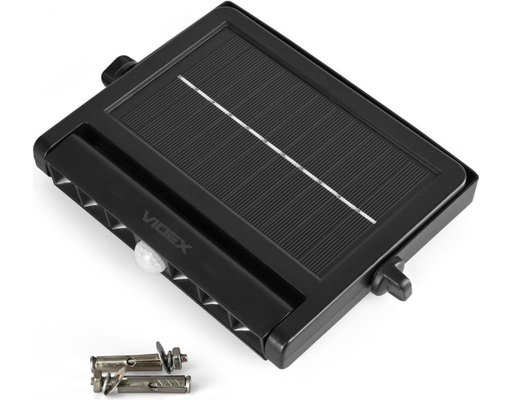 Вуличний прожектор VIDEX IP54 VL-WLSO-025-S призначений для освітлення прибудинкових територій, доріжок, внутрішніх двориків. Встановлюється на стіну. Спеціальне захисне покриття збереже ліхтар від подряпин під час монтажу або інших неприємностей у процесі експлуатації. Після монтажу не потребує обслуговування протягом усього періоду експлуатації. Має датчик руху та вбудовану сонячну панель, що забезпечує автономну роботу світильника. Потужність панелі – 2W 5,5V. Ємність акумулятора (LiFePO4) – 2Ah. Технічні дані: