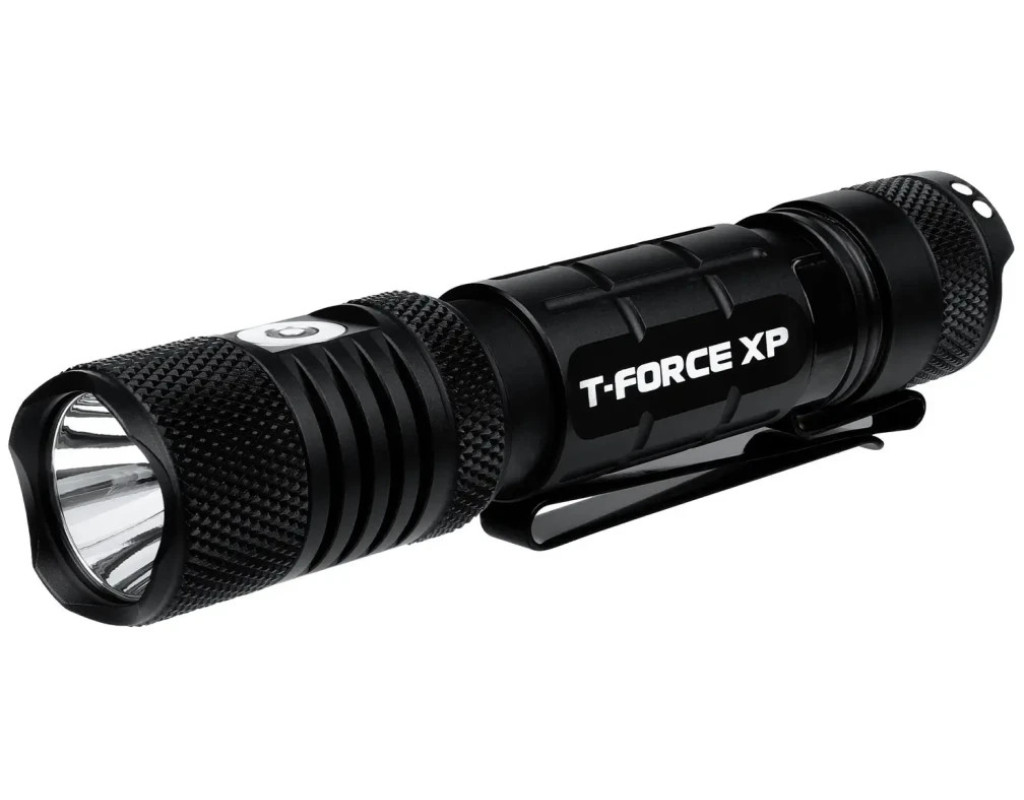 Підствольний ліхтар Mactronic T-Force XP (2030 Lm) USB Rechargeable Magnetic відноситься до нового покоління тактичних ліхтарів від торгової марки Mactronic, з можливістю встановлення на зброю завдяки додатковим аксесуарам. Це компактний і одночасно потужний, далекобійний і надійний тактичний ліхтар, розроблений для роботи в екстремальних умовах, обладнаний світлодіодом Luminus SST40 LED з високою продуктивністю і енергоефективністю. Відмінний вибір для військових, співробітників охоронних організацій та працівників силових структур. Ця модель здатна ефективно освітлювати територію на відстані до 330 метрів, а максимальний світловий потік згідно стандарту ANSI/PLATO FL 1-2016 становить 2030 люмен. Комплектна акумуляторна батарея Li-ion 18650 3200mAh забезпечує більш ніж 29 годин безперервної роботи в економному режимі. Крім того система альтернативного живлення DSS™ дозволяє використовувати батарейки CR123А, які відмінно переносять мінусову температуру і не розряджаються більше 10 років у режимі зберігання. Ліхтар має 6 режимів роботи, серед яких: турборежим - для екстрених випадків, стробоскоп - для подачі добре помітних на великій відстані сигналів або засліплення супротивника, і світлячок - для підсвічування на близькій відстані, читання карт та текстів (у цьому режимі ліхтар може працювати 31 днень на одному заряді батареї). Mactronic T-Force XP має всі сучасні захисні системи, які дозволяють уберегти ліхтар від впливу потужної віддачі, короткого замикання, перегріву, механічних пошкоджень або попадання вологи всередину. Корпус цієї моделі виконаний з анодованого алюмінію, забезпечує вологозахист за стандартом IPX8 (витримує тривале занурення під воду на глибину більше 2 м) та ударостійкість при падінні з висоти до 2 м на бетон. Модель можна додатково укомплектувати підствольним кріпленням стандарту Picatinny і виносною кнопкою дистанційного керування. Щоб попередити користувача про стан батареї, ліхтар має індикатор заряду, який знаходиться в кнопці перемикання режимів. Магнітний зарядний кабель швидко та надійно кріпиться до корпусу ліхтаря та забезпечує заряджання акумулятора від порту USB. Час до повного заряджання ліхтаря в штатному режимі становить 5 год 30 хв. Індикатор на корпусі просигналізує про повний заряд зеленим світлом. Перед першим використанням обов'язково витягніть ізоляційну плівку між задньою кришкою ліхтаря та акумулятором. Кожен тактичний ліхтар Mactronic T-Force XP має свій індивідуальний серійний номер вигравіруваний на корпусі, що полегшує контроль якості на всіх етапах від виробництва до експлуатації. Технічні характеристики: