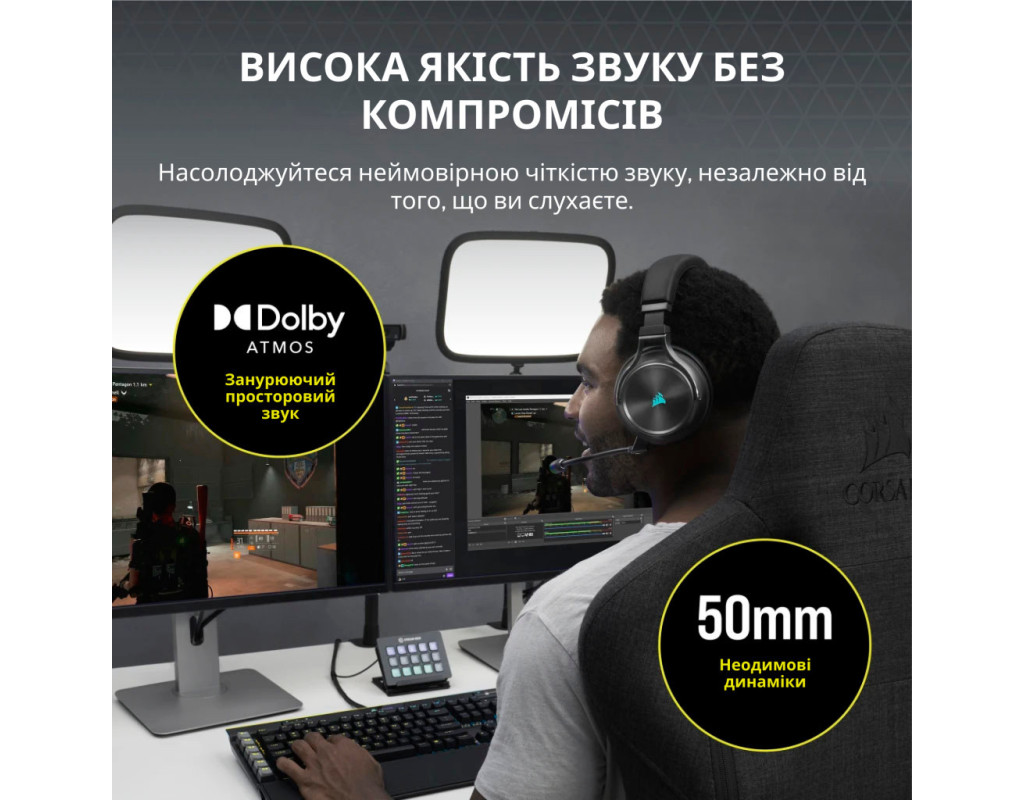 | Навушники Corsair Corsair Virtuoso RGB Wireless XT (CA-9011188-EU) — це продукт, що втілює в собі досконалість у кожній деталі, створюючи вражаючий досвід звуку для найвимогливіших користувачів. Кожен аспект цієї гарнітури розроблено так, щоб забезпечити неперевершену якість звуку, інноваційний дизайн і максимальний комфорт, що робить її ідеальним вибором і для професійних геймерів, і для тих, хто цінує високу якість аудіо в повсякденному житті. Гарнітура виділяється своєю універсальністю в підключенні, завдяки чому користувачі можуть легко перемикатися між різними пристроями. Вибір з Bluetooth 5.0, Jack 3.5 мм, USB Type-A та радіоканалом надає можливість підключення до ноутбуків, ПК, смартфонів, ігрових консолей PlayStation 4 та Nintendo Switch. Забудьте про неприємності з кабелями: бездротова технологія SLIPSTREAM WIRELESS забезпечує свободу рухів і стабільне з'єднання. Навушники оснащені високоякісними 50-міліметровими неодимовими динаміками, що гарантують вражаючу чіткість та деталізацію звучання. Завдяки підтримці технології Dolby Atmos, ви опиняєтеся в центрі багатовимірного звукового простору, що має велике значення як в іграх, так і під час перегляду фільмів, справляючи враження присутності в самому центрі подій. Ергономічне наголов'я та амбушури з піноматеріалу з ефектом пам'яті адаптуються під форму вашої голови, що дозволяє користуватися навушниками протягом довгих годин без втоми чи дискомфорту. Закрите акустичне оформлення гарантує надійну ізоляцію від зовнішніх шумів, дозволяючи повністю зосередитися на грі або перегляді медіаконтенту. Вбудований мікрофон з винесеною конструкцією забезпечує чітку та якісну передачу голосу, що робить цю гарнітуру ідеальною для командних ігрових сесій або важливих відеоконференцій. Завдяки прямій конструкції штекера та єдиному Jack входу, з'єднання стає простішим, ніж коли-небудь. Чорний колір на додачу до елегантного дизайну робить ці навушники стильним аксесуаром, а яскрава RGB-підсвітка додає привабливості, підкреслюючи ваш стиль і доповнюючи ігрову атмосферу. Автономність до 15 годин без підзарядки забезпечується інтерфейсом зарядки USB Type-C, що гарантує швидке та зручне заряджання. Це робить навушники Corsair Virtuoso RGB Wireless XT надійним супутником у вашій ігровій подорожі або повсякденному житті, додаючи новий рівень задоволення у кожен момент вашого відпочинку. В кожній деталі цих ігрових навушників втілено безкомпромісне поєднання продуктивності та естетичної привабливості. Незалежно від того, чи ви займаєтеся інтенсивними іграми, насолоджуєтеся кіно або спілкуєтеся з друзями, ця гарнітура стане вашою вірною можливістю відкривати нові горизонти звучання. |