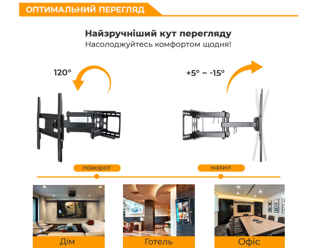 | Кронштейн ITech PTRB44 – це ідеальне рішення для встановлення телевізора на стіну, що поєднує в собі надійність і зручність використання. Цей кронштейн призначений для телевізорів з діагоналлю від 32" до 55", що робить його відмінним вибором для різноманітних інтер'єрів та приміщень. Завдяки міцній конструкції, виготовленій з декапированого та холоднокатаного листа товщиною 1.5-1.8 мм, він витримує навантаження до 40 кг, що вдвічі перевищує випробуване максимально допустиме навантаження. Однією з ключових особливостей цього кронштейну є його високий рівень універсальності щодо підтримуваних розмірів діагоналей. Він сумісний з моделями телевізорів розміром від 32 до 55 дюймів, включаючи найбільш популярні розміри, такі як 42", 50" та 55". Крім того, його VESA-сумісність з розмірами 200x200, 400x200, 300x300 та 400x400 мм дозволяє легко підібрати відповідний варіант для будь-яких телевізорів. Кронштейн також пропонує чотири ступені свободи, що дозволяють регулювати положення телевізора з максимальною точністю. Кут нахилу варіює від +5° до -15°, дозволяючи підлаштувати екран під бажаний кут перегляду. Крім того, з кутом повороту до 120°, ви зможете насолоджуватися улюбленими програмами та фільмами, де б ви не сиділи в кімнаті. Додатковою перевагою є регульована відстань від стіни – від 53 до 464 мм. Це забезпечує можливість встановлення телевізора навіть у невеликих приміщеннях, дозволяючи зручно розмістити його на стіні без зайвих зусиль. <Особливою функцією> кронштейну ITech PTRB44 є система укладання кабелю, що захищає кабелі від перегину і пошкодження. Це забезпечує не лише безпеку, але й естетичний вигляд, оскільки всі дроти залишаються акуратно впорядкованими і прихованими від очей. Завдяки своєму стильному дизайну та функціональності, кронштейн ITech PTRB44 гармонійно впишеться у будь-який інтер'єр, підкреслюючи сучасний і лаконічний стиль вашого дому чи офісу. Він розроблений для тих, хто цінує якість, зручність і надійність у кожній деталі. Обираючи цей кронштейн, ви отримуєте не лише засіб для встановлення телевізора, але й незамінного помічника, який підвищить комфорт вашого домашнього перегляду. |