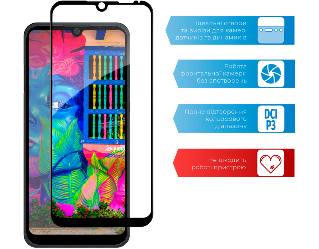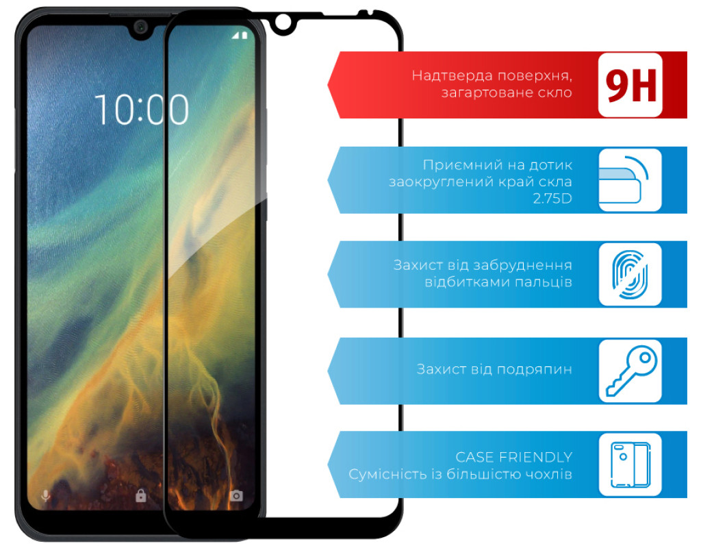 • Рівень міцності 9H — мінімізує ризик пошкодження передньої панелі мобільного пристрою під час повсякденного використання
