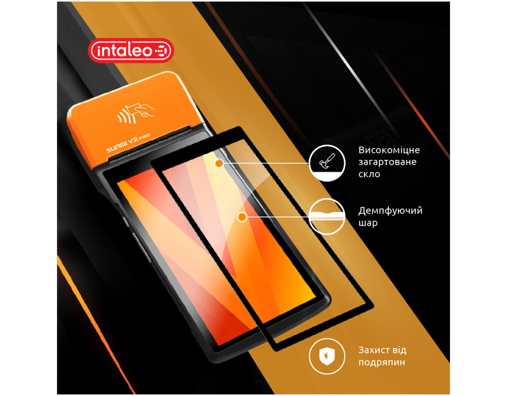 Захистне загартоване скло Full Glue Glass Protector — один із найкращих засобів для захисту не лише екрана, а й усієї передньої панелі POS-терміналу, від краю до краю. Воно повністю повторює розміри та форму передньої панелі пристрою. Забезпечує максимальний захист від пилу та вологи, не залишаючи прозорих, повітряних бульбашок або слідів клейового шару на екрані. Скло надійно оберігає від ударів або падінь, багаторазових операцій із роботою екрана пристрою. Ключові особливості: - Клейовий шар нанесений по всьому склу. Завдяки цьому забезпечує надійну і сильну фіксацію всього скла, а не тільки його країв. У разі потреби таке скло можна легко зняти, без ризику пошкодити екран або його покриття.