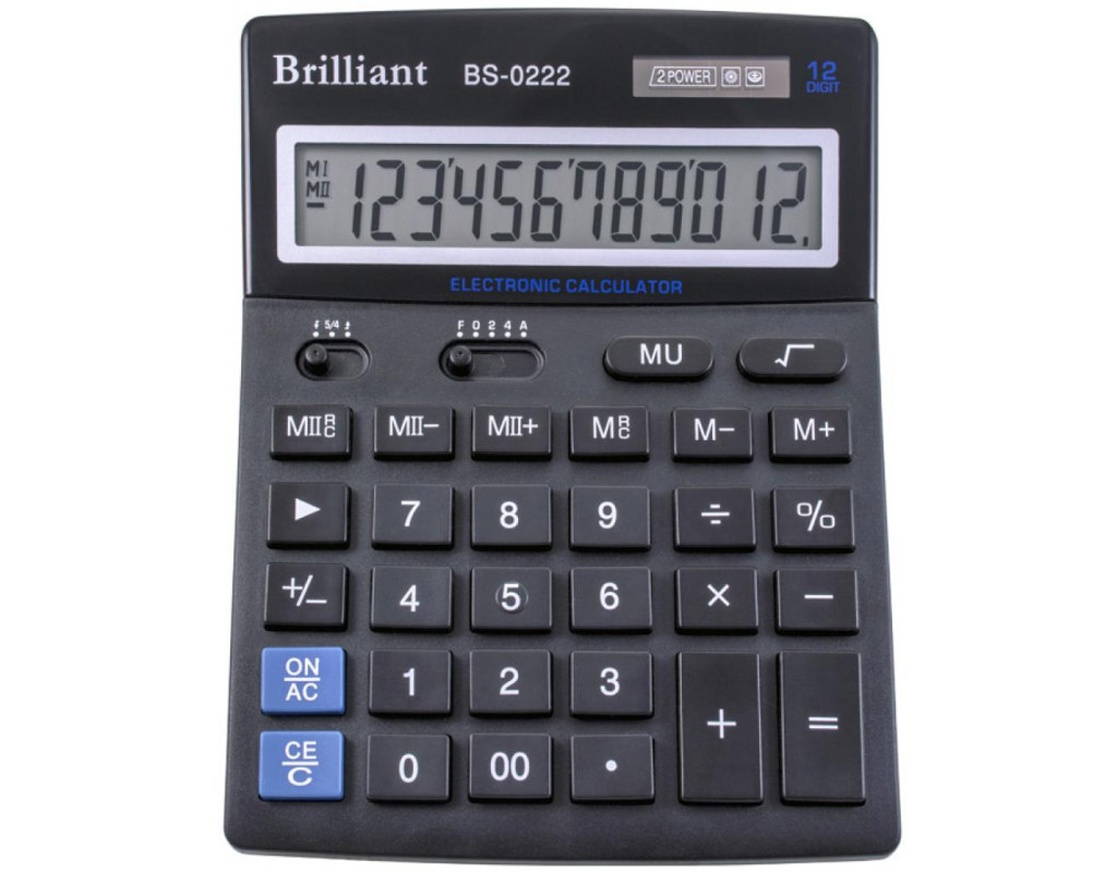 Калькулятор Brilliant BS-0222 допоможе легко зробити різноманітні підрахунки, обчислити відсотки, підрахувати підсумкову суму.