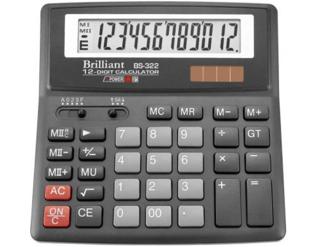 | Професійний калькулятор Brilliant BS-322 допоможе легко зробити різні підрахунки, обчислити відсотки, підрахувати підсумкову суму. Володіє такими функціями як: автоматичне вимикання живлення, захист від залипання клавіш. Присутня клавіша знака числа, клавіша операції "підвищення ціни", клавіша видалення останньої цифри, клавіша знака числа, перемикач "режим округлення", перемикач "кількість знаків після коми", клавіша загальної суми операції. Особливості калькулятора: розрядність: 12; тип пам'яті: дворівнева пам'ять; клавіші введення розрядів: клавіша "00"; тип дисплея: РК-дисплей; тип клавіатури: пластмасові клавіші; тип батарей живлення: сонячна літієва. |