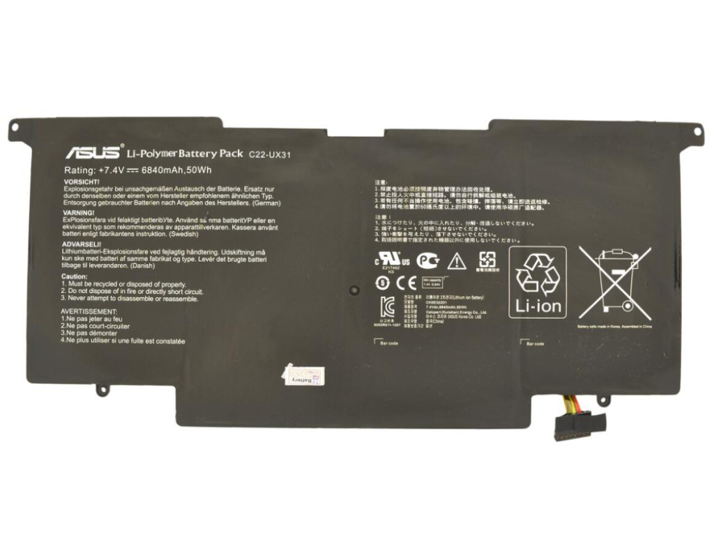 Акумулятор до ноутбука Asus ZenBook UX31A C22-UX31, 6840mAh (50Wh), 6cell, 7.4V, Li-Pol, black AlSoft (A47782)