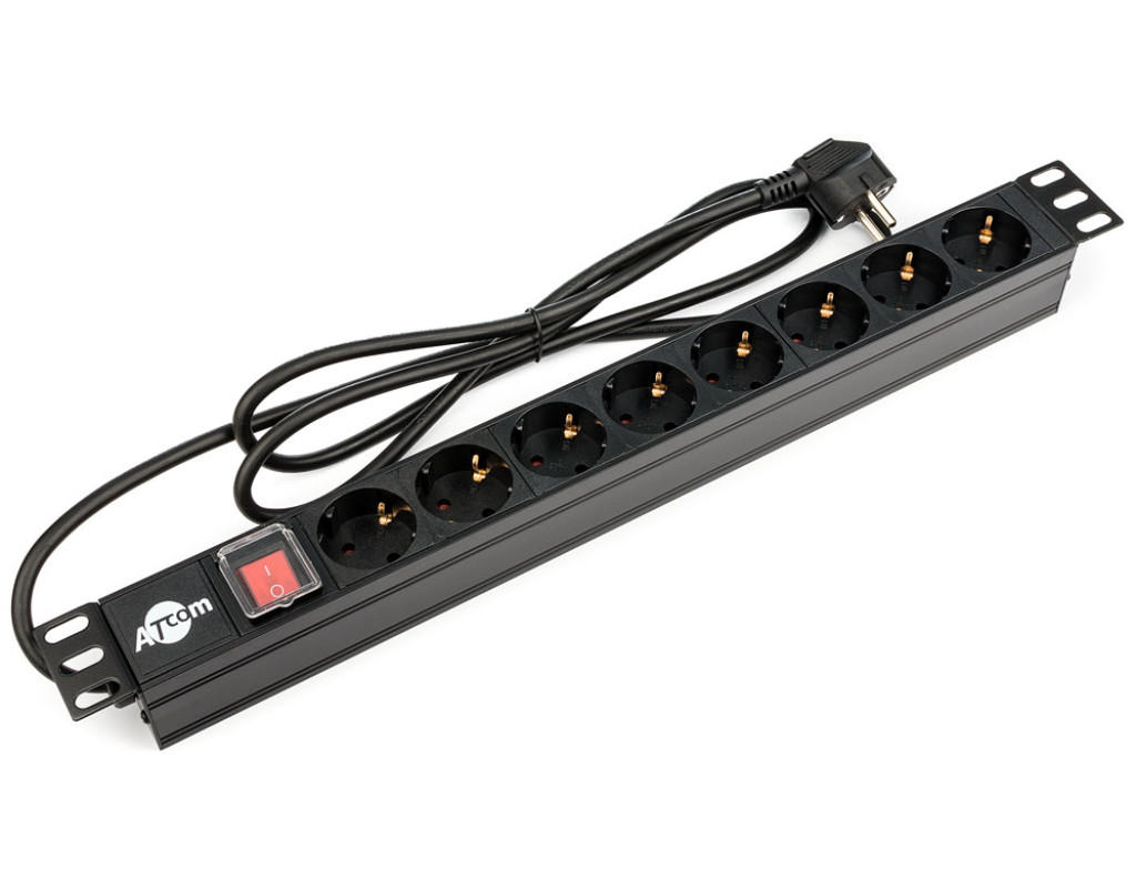 Силовий блок 19" 8 розеток, кабель 2.0m мідь 1.5мм, з вимикачем Atcom (AT1821)