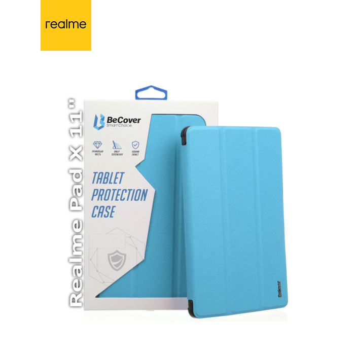 Тип - обкладинка, Сумісність з моделями - Realme Pad X, діагональ - 11, Спосіб кріплення - обкладинка, спосіб закриття - магніт, Матеріал - штучна шкіра, блакитний