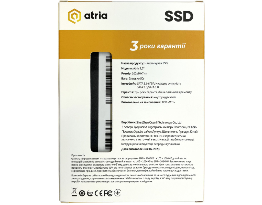 | Накопичувач SSD 2.5" 256GB XT200 ATRIA (ATSATXT200/256) – це ідеальне рішення для покращення продуктивності вашого комп'ютера або ноутбука. Завдяки об'єму пам'яті 256 GB та використанню сучасної флеш-пам'яті 3D TLC NAND, цей SSD забезпечує швидкий доступ до даних та стабільну роботу системи навіть під високими навантаженнями. Оснащений форм-фактором 2.5" та інтерфейсом підключення SATA III (6Gb/s), накопичувач відзначається зручністю встановлення та сумісністю з більшістю сучасних комп'ютерів. Висока швидкість читання 550 Mb/s та швидкість запису 355 Mb/s дозволяють миттєво завантажувати операційну систему, програми чи ігри, забезпечуючи вам незабутній користувацький досвід. Цей накопичувач особливо привертає увагу тим, що має товщину лише 7 мм, що дозволяє використовувати його як у десктопах, так і у мобільних пристроях. Незалежно від того, чи використовуєте ви його для роботи чи розваг, ATRIA XT200 допоможе оптимізувати ваш пристрій завдяки зниженню енергоспоживання та меншому виділенню тепла у порівнянні з традиційними HDD-дисками. Вага накопичувача всього 50 г, що робить його практично непомітним після встановлення. Це справжній компаньйон для тих, хто цінує швидкість, надійність та енергоефективність. ATRIA XT200 дозволяє без значних витрат покращити продуктивність вашого пристрою, не жертвуючи якістю та зручністю користування. Цей SSD точно стане ідеальним вибором для користувачів, які шукають продуктивний та надійний накопичувач. Підвищте якість роботи свого комп'ютера чи ноутбука, насолоджуючись усіма перевагами сучасних програм та ігор з ATRIA XT200. |