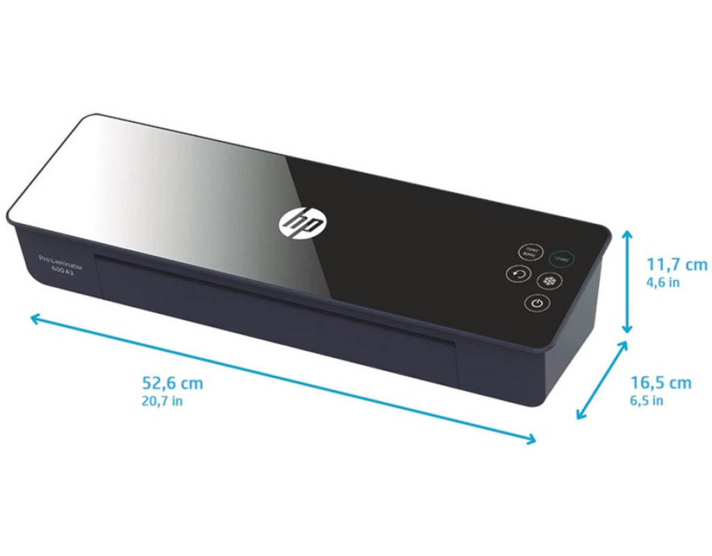 Ламінатор HP Pro Laminator 600 A3 — це чудове рішення для гарячого і холодного ламінування в SоHо сегменті. Ламінуйте документи, візитні картки, дитячі малюнки, фотографії розміром до формату А4. Компактний розмір ламінатора дозволяє розмістити його у будь-якому зручному для вас місці. Ламінатор HP Pro Laminator 600 A3 працює із плівками товщиною від 75/80 мкм до 125 мкм. Товщина документа разом із плівкою не повинна перевищувати 0,5 мм. Встановлюйте необхідний температурний режим в залежності від товщини плівки за допомогою зрозумілої функціональної кнопки. Ламінатор буде готовий до роботи із плівкою товщиною 80 мкм через одну хвилину після ввімкнення. Із швидкістю ламінування 600 мм/хв ви отримаєте готовий документ формату А3 за 45 секунд. Якщо ви випадково вклали плівку під кутом, це може призвести до її застрягання. Із цим допоможе впоратись важіль деблокування роликів ABS - просто натисніть на нього та акуратно витягніть плівку через вхідний лоток. Пристрій автоматично переходить в режим очікування і зупиняє процес нагріву після 30 хв простою – не хвилюйтесь, якщо забули його вимкнути. Ламінатор HP Pro Laminator 600 A3 укомплектовано лінійкою для різки та заокруглювачем кутів, для зберігання яких передбачено спеціальне відділення у нижній частині пристрою. Стартовий набір із 15 плівок різного формату також входить у комплект постачання – ви зможете почати ламінування відразу після розпакування ламінатора. |