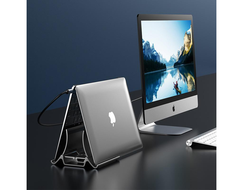 | Вертикальна регульована підставка для ноутбука використовує силу тяжіння комп’ютера для автоматичного регулювання ширини та щільного затискання